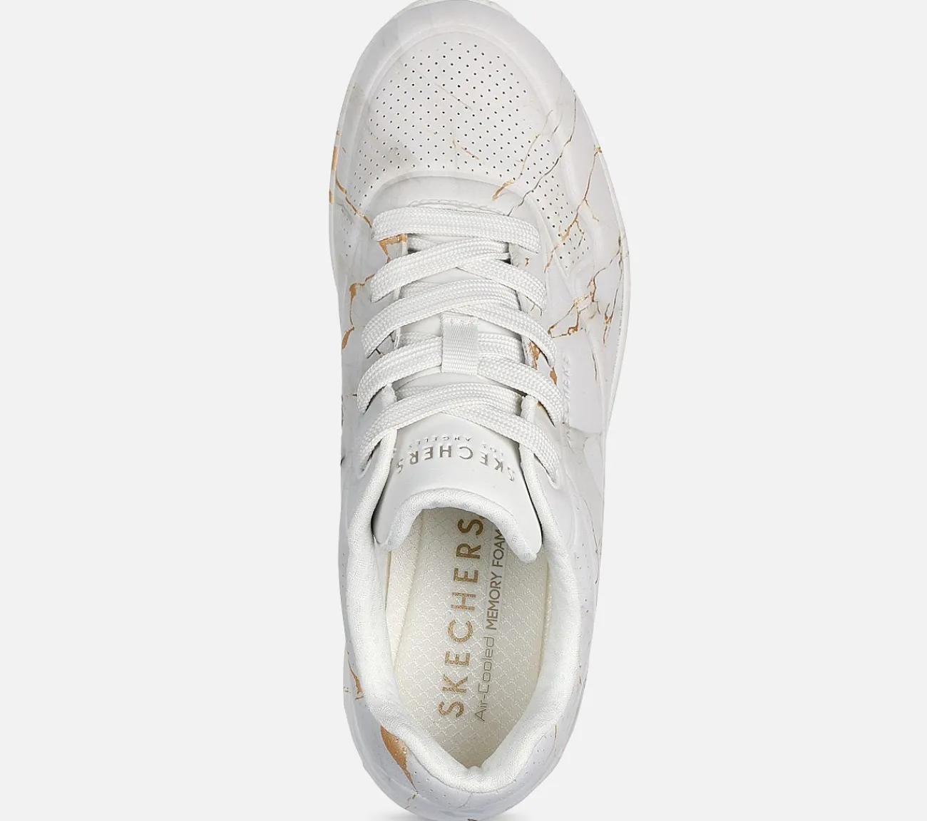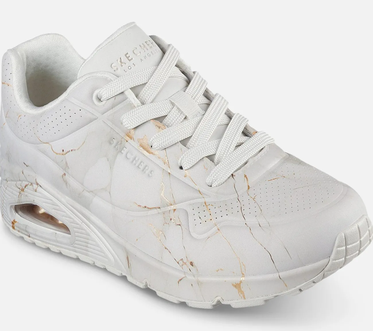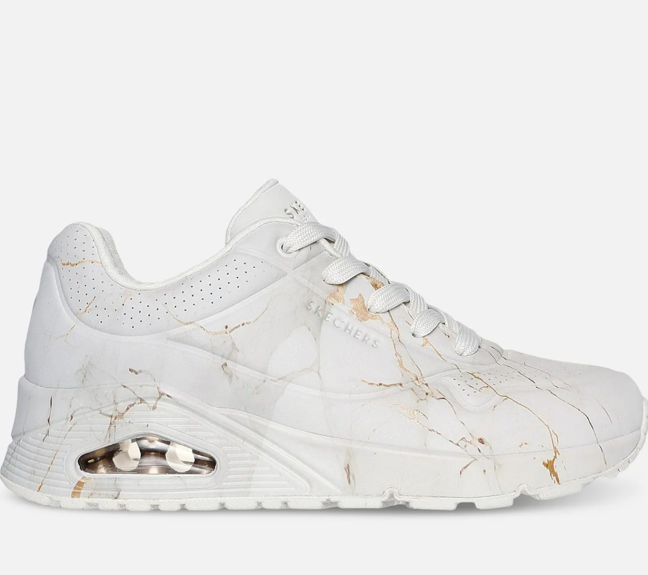 Vælg et solidt valg inden for mode og komfort med Skechers Street™ Uno – Marble Marvel. Denne snørebåndssneaker har et marmormønstret duraleather-overdel og en marmormønstret mellemsål med en Skechers Air-Cooled Memory Foam® indersål og en Skech-Air® synlig luftpude-mellemsål.