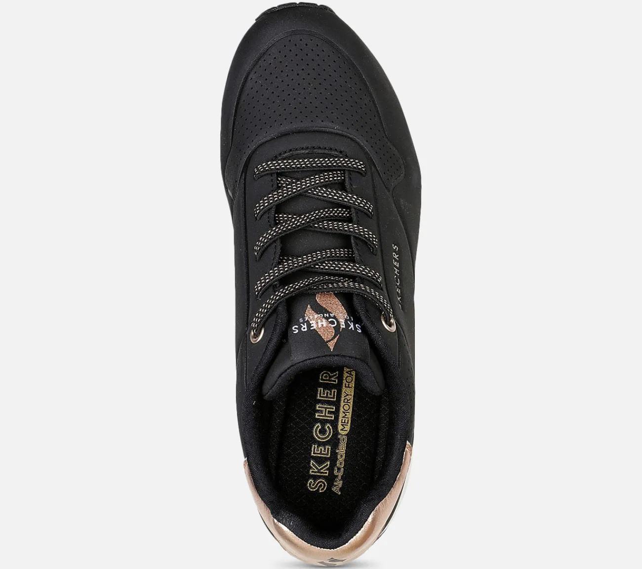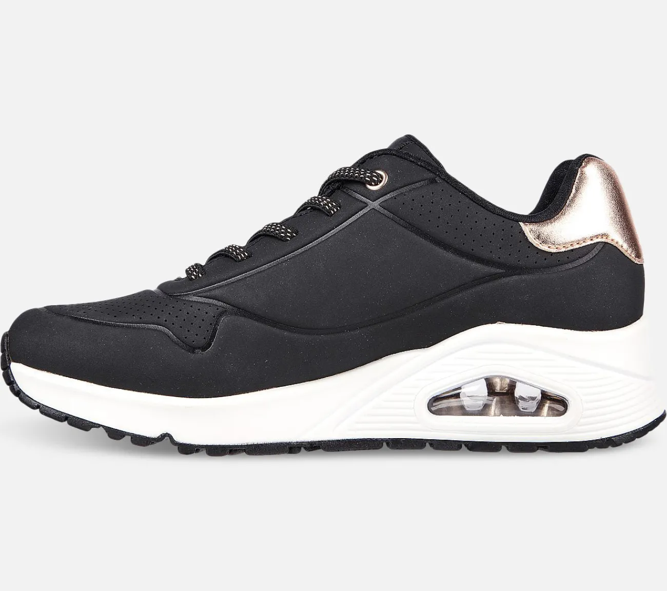 Skechers Street Uno – Shimmer Away er den ultimative fashion sneaker, der kombinerer stil med komfort. Skoen har en Skechers Air Cooled Memory Foam indersål som sikrer dig uovertruffen komfort ved hvert skridt. Den stødabsorberende Skech-Air mellemsål tilbyder letvægtsstøtte og reducerer belastningen på fødder og led. Perfekt til den modebevidste, der ikke vil gå på kompromis med komforten i hverdagen.