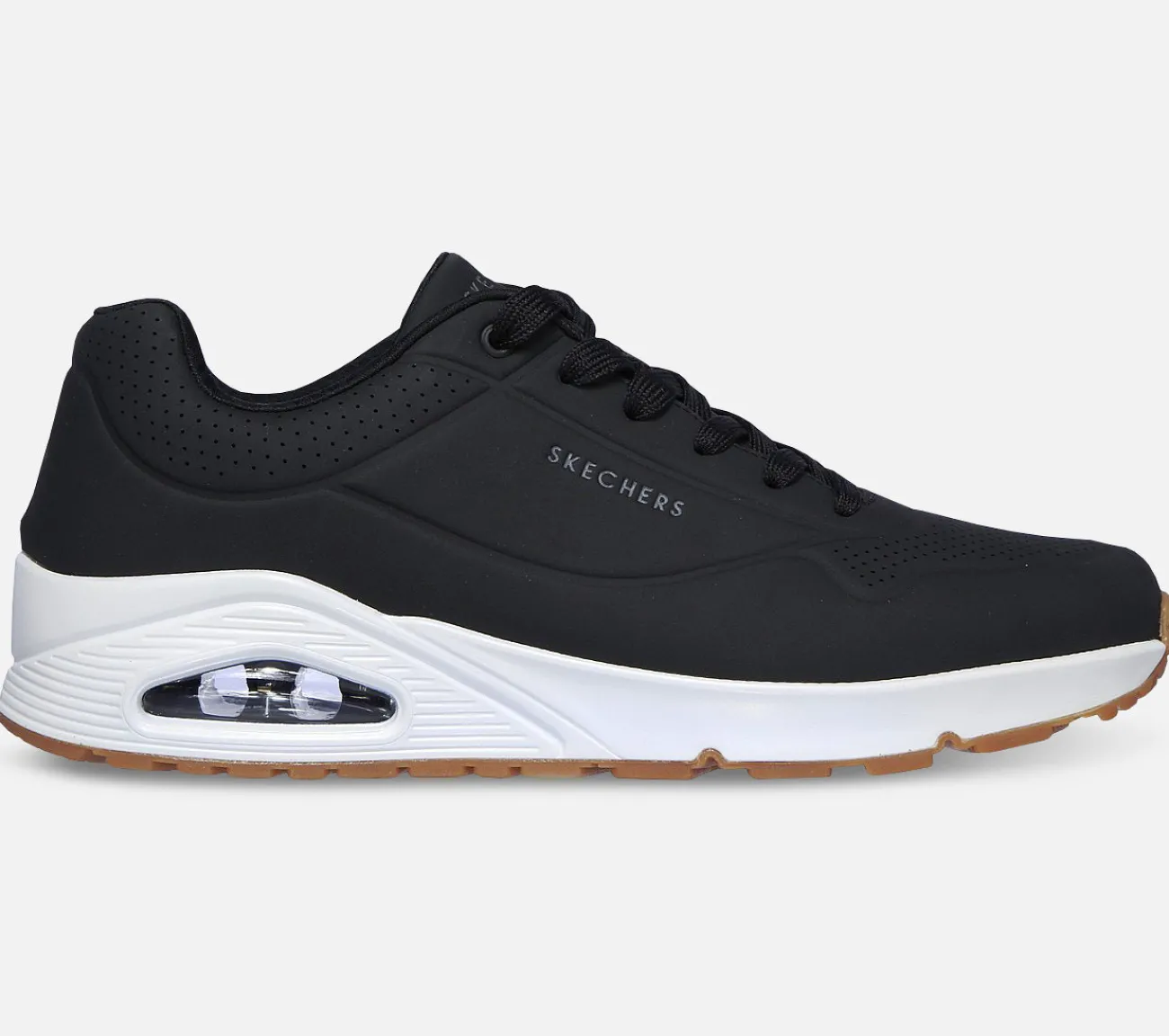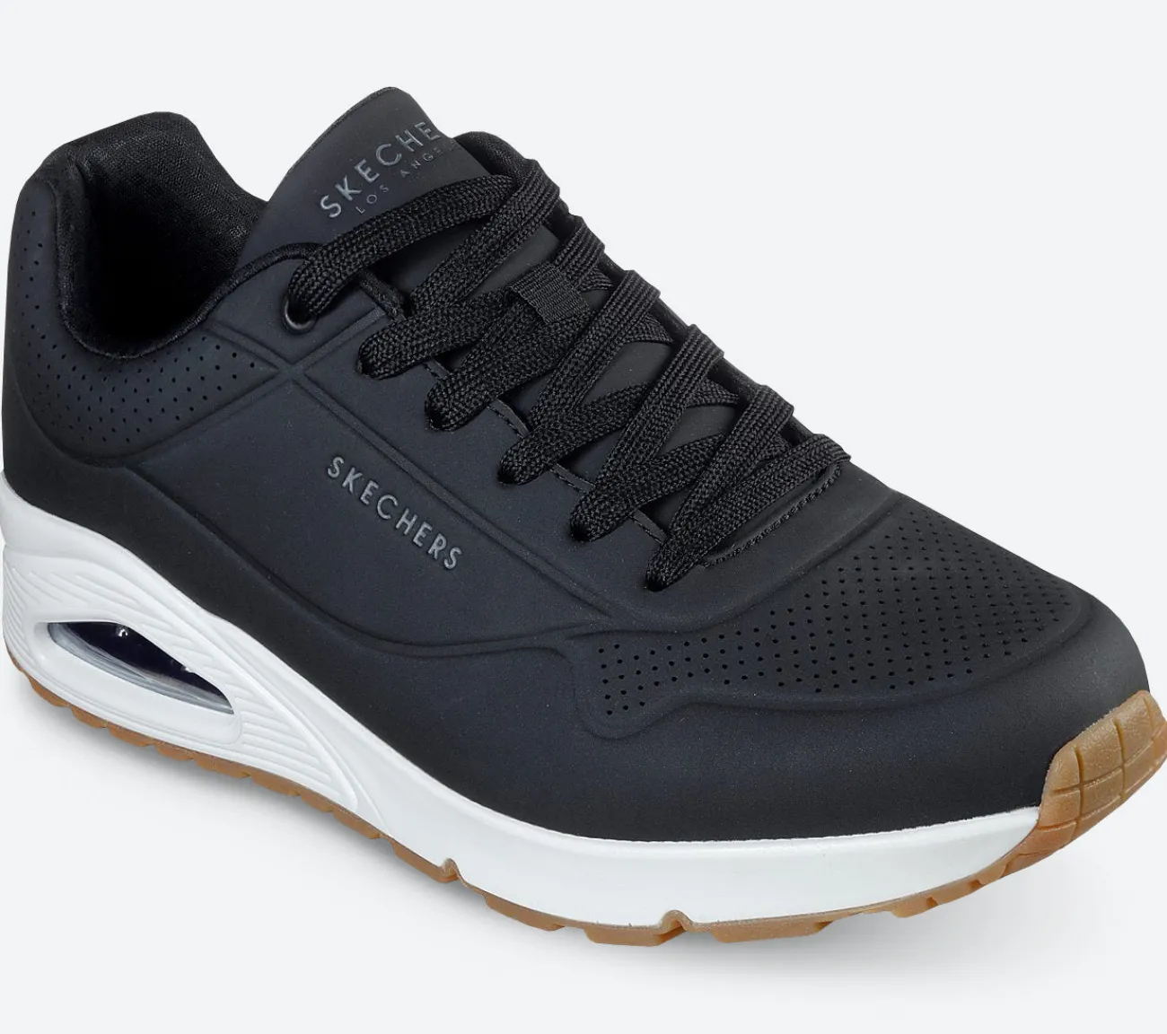 Her får du trendy stil og støddæmpende komfort med Street Uno – Stand on Air. Med en synlig Skech-Air mellemsål får du støddæmpning og stor støtte. Med denne lækre sko fra Uno kollektionen får du en Air-Cooled Memory Foam der giver dig en unik pasform og blød fornemmelse hele dagen. En perfekt sneaker til hverdagsbrug eller til jobbet.