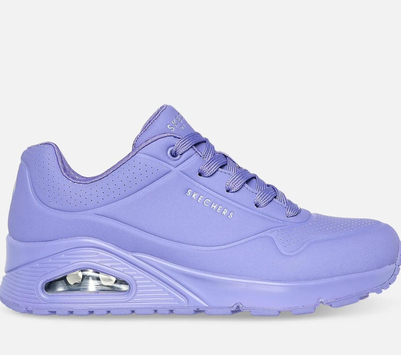 Med Uno – Stand on Air får du en helt fantastisk sko med en masse støtte og komfort hele dagen! Dette er en fed hverdagssko der har en fast sål med en synlig Skech-Air mellemsål der er stødabsorberende og giver dig en skøn følelse ved hvert skridt.