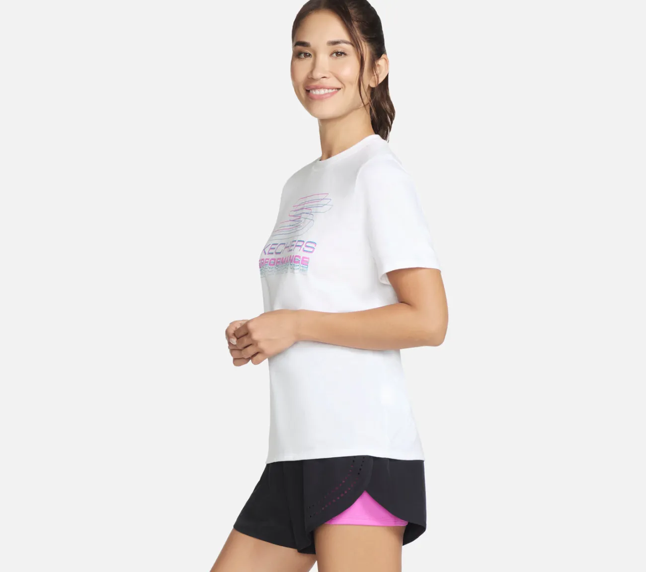 Slap af i din foretrukne komfortstil med Skechers Velocity Tee. Denne klassiske pasform t-shirt har et gradient Skechers-grafik på brystet.