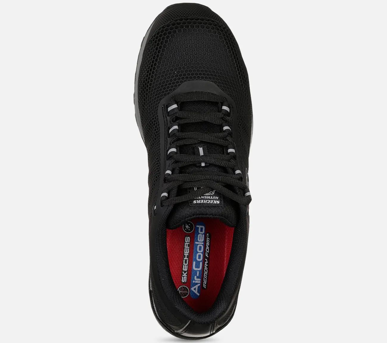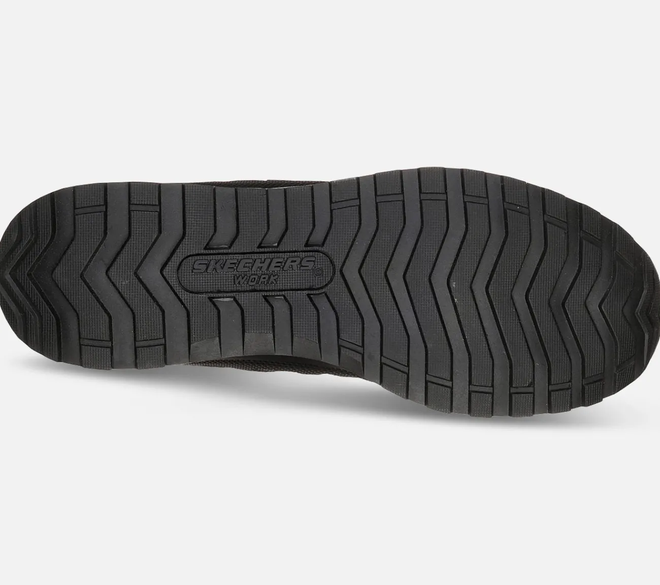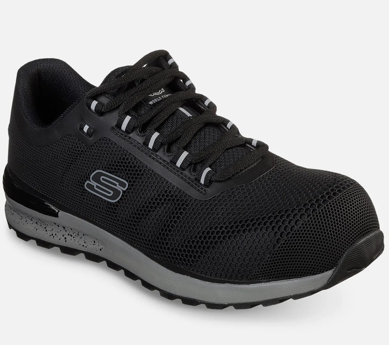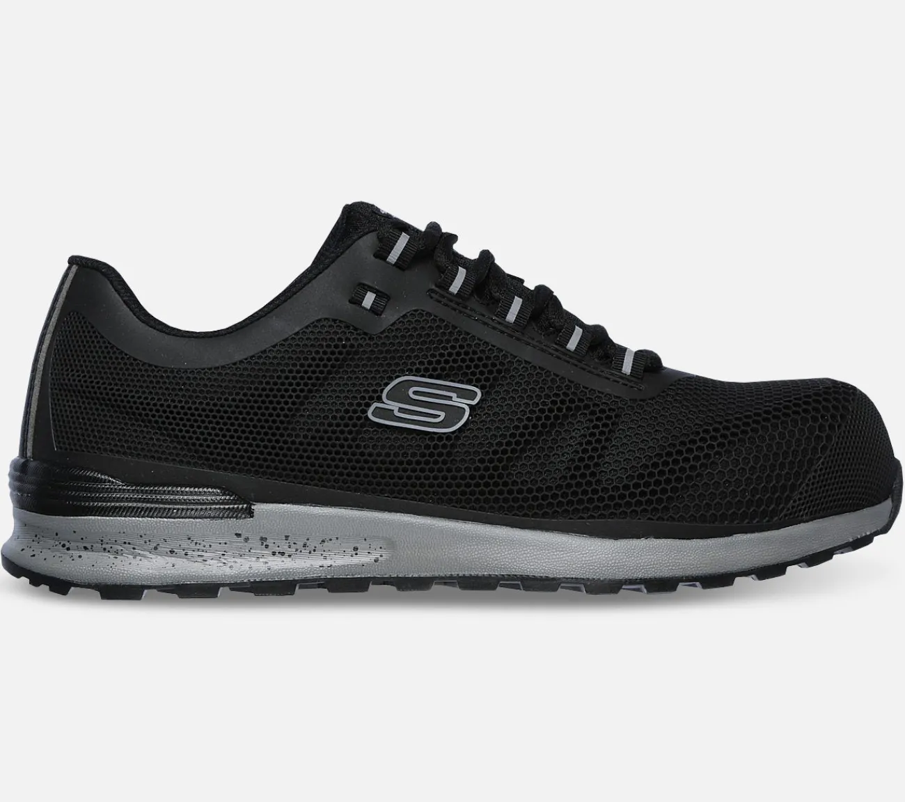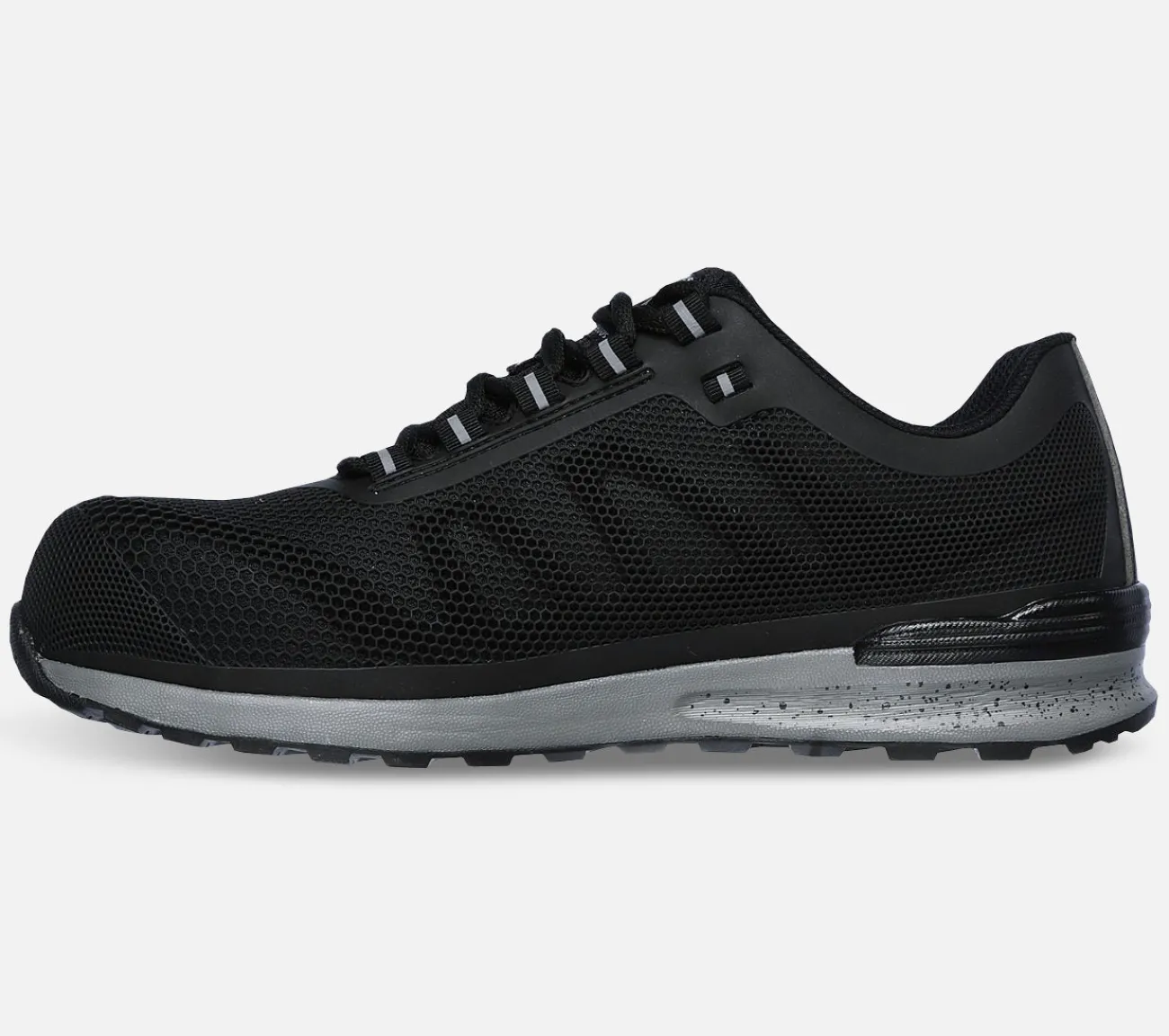 Skechers Bulklin-Lyndale Safety Toe er en sikkerhedssko med tåværn. Sikkerhedsskoen er ekstra rummelig ved forfoden. Overdelen er af mesh tekstil, hvilket giver foden mulighed for at ånde. indersålen er en åndbar Memory Foam indersål, som former dig unikt efter fodens pasform og aflaster ømme fødder.
