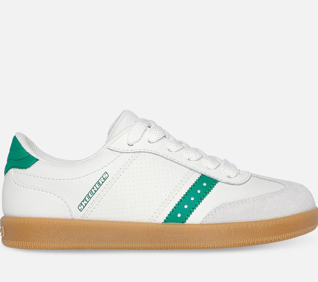 Oplev retro stil og flair med ren Skechers komfort med Skechers Zinger Street. Denne sko med snørebånd i retro design har en syntetisk og ruskindsoverdel med syningsdetaljer, en holdbar gummi ydersål og en polstret komfort indersål.