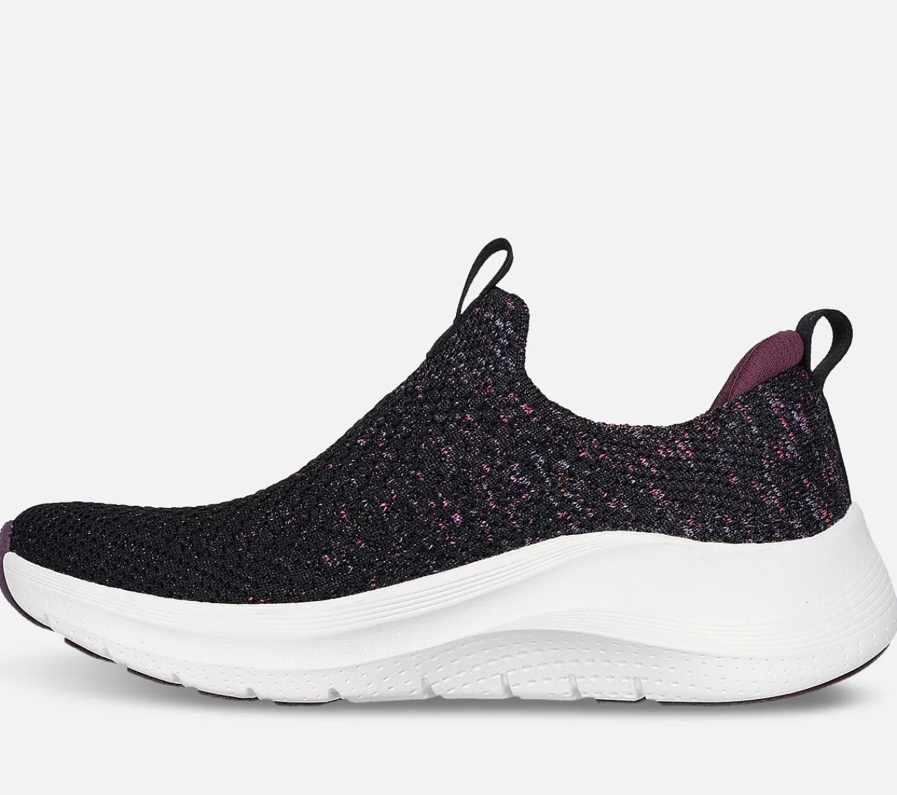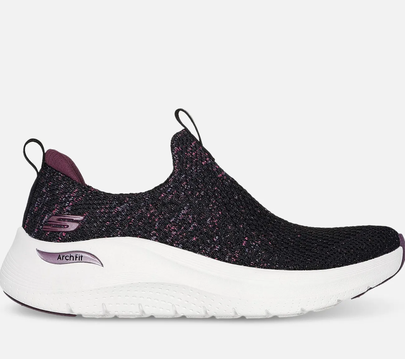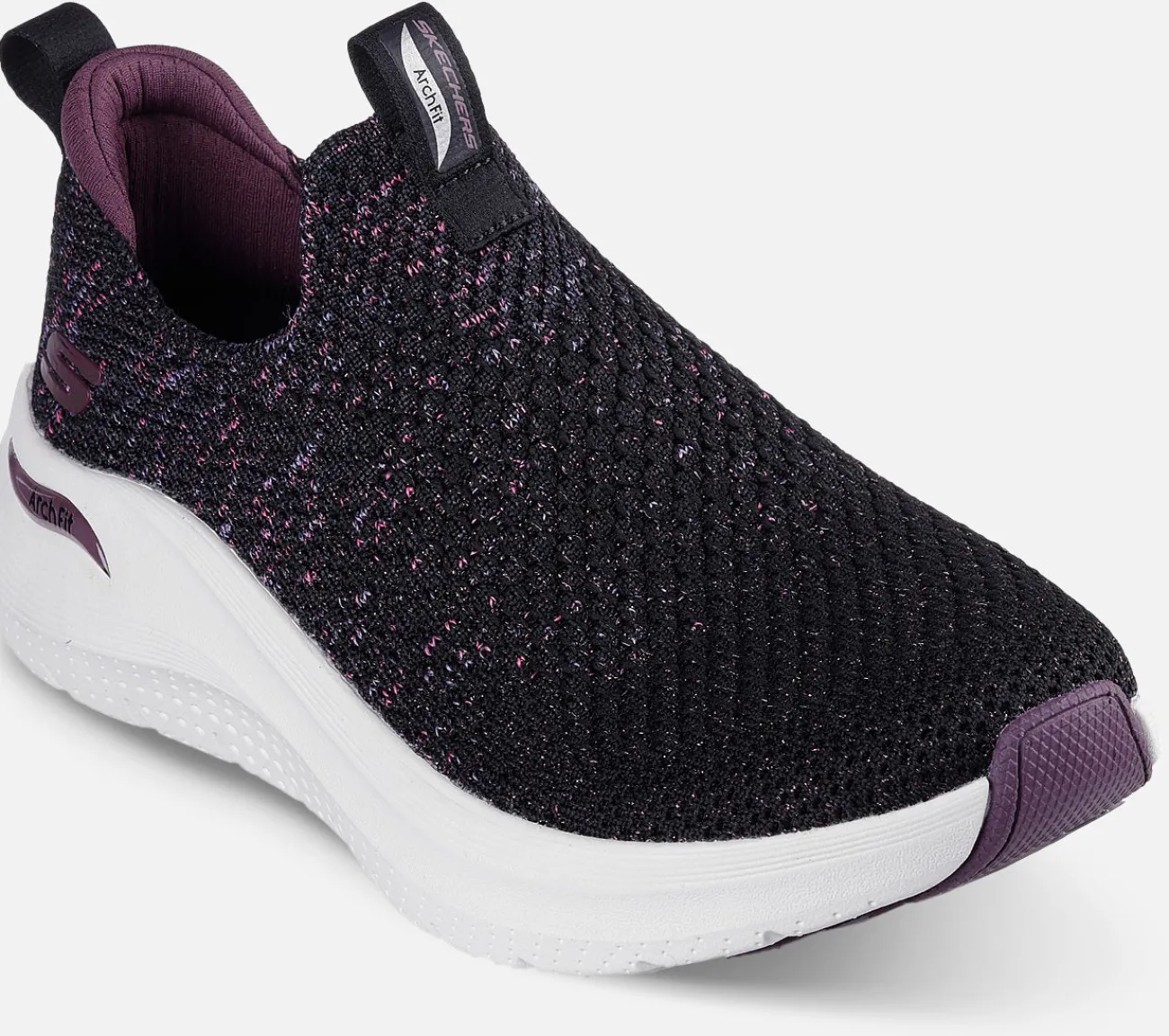 Gør din komfort glamourøs med Skechers Arch Fit 2.0 – Sheer Shimmer. Denne veganske sko har en konstrueret space-dye Stretch Fit overdel med metallisk strikket detalje og en aftagelig Arch Fit indersål for optimal støtte og komfort.