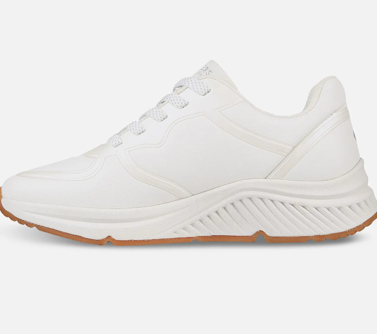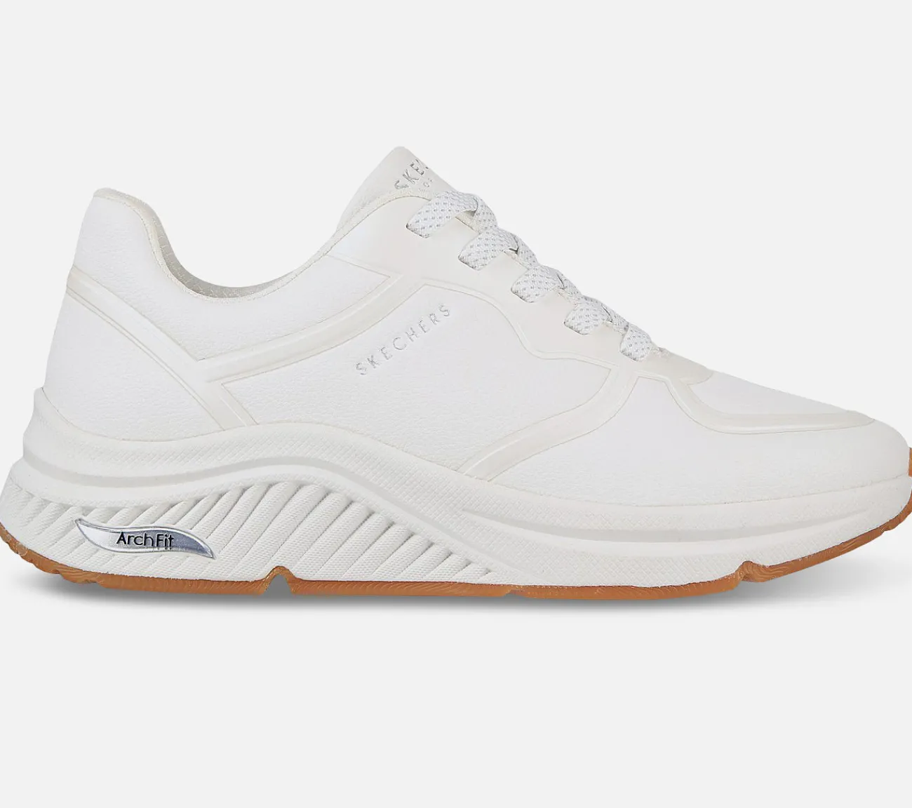 Skechers Arch Fit S-Miles – Mile Makers er en hverdagssko I sporty stil, med ekstra støtte under svangen. Her er stil og komfort i fokus. Skoens overdel er fremstillet i syntetisk læder, hvilket giver et glat og elegant udseende.