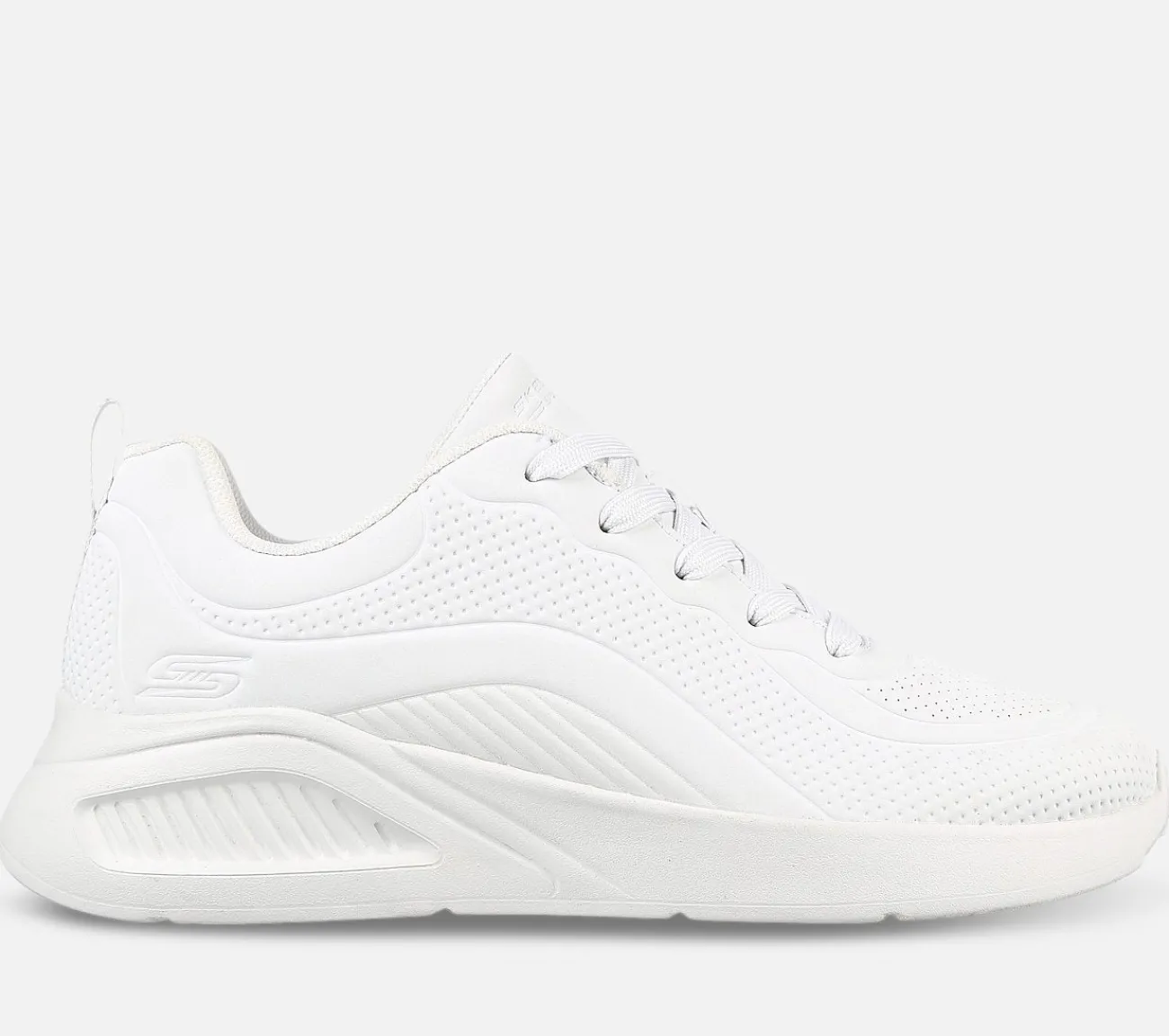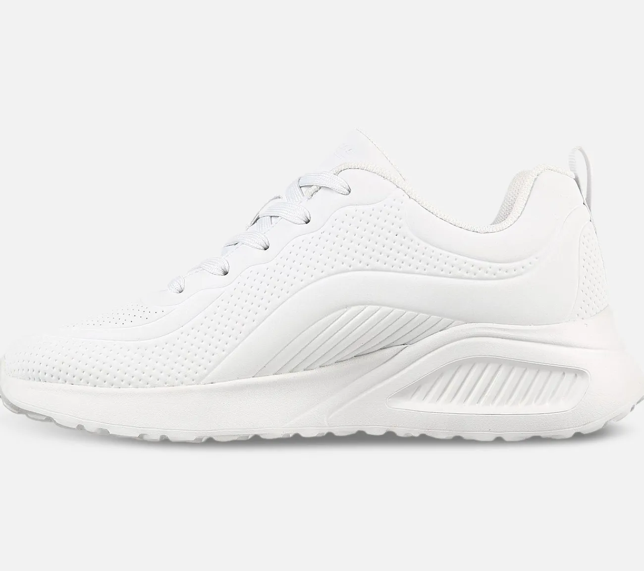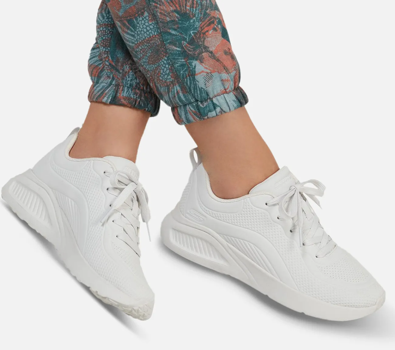 Trendy atletisk stil og polstret komfort kombineres i Skechers BOBS Sport Buno – How Sweet. Denne snøresko har en monokromatisk syntetisk overdel og en polstret Skechers Memory Foam indersål. For hvert BOBS-køb doneres en del til dyr i nød.