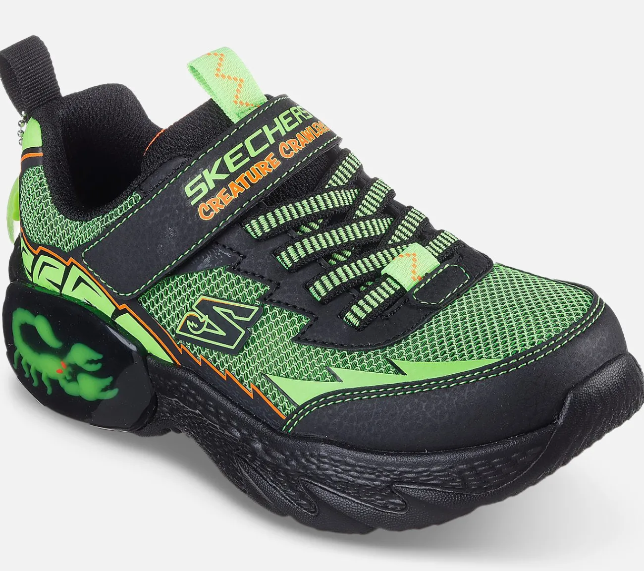 Zum, flyv og kravl i legende og komfortable Skechers Creature-Crawlers. Denne sportslige sneaker er inspireret af leddyr og har et tematiskeret netstof og syntetisk overdel med stræksnører og justerbar strop over vristen plus en teknisk del i mellemsålen og en aftagelig nøglering.