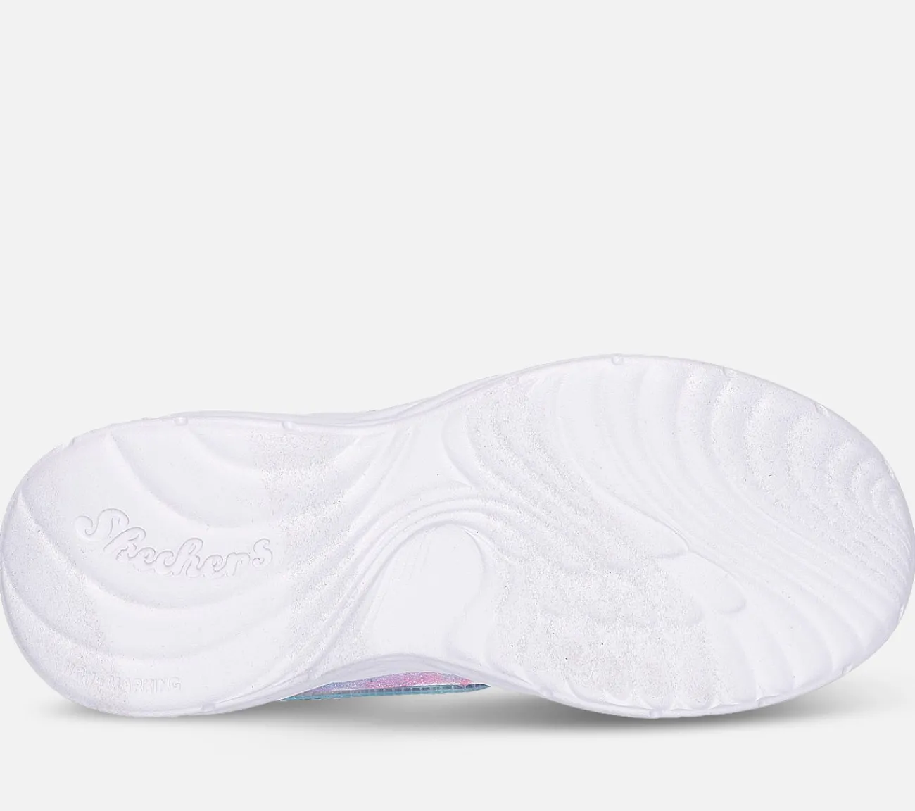 Funkl i stil med Skechers Dream Racer – Wing Brites. Dette sporty design fra Magical Collection med sommerfugletema med en overdel i syntet materiale med glitrende mesh, elastikbånd med lås i fronten og en polstret indersål.