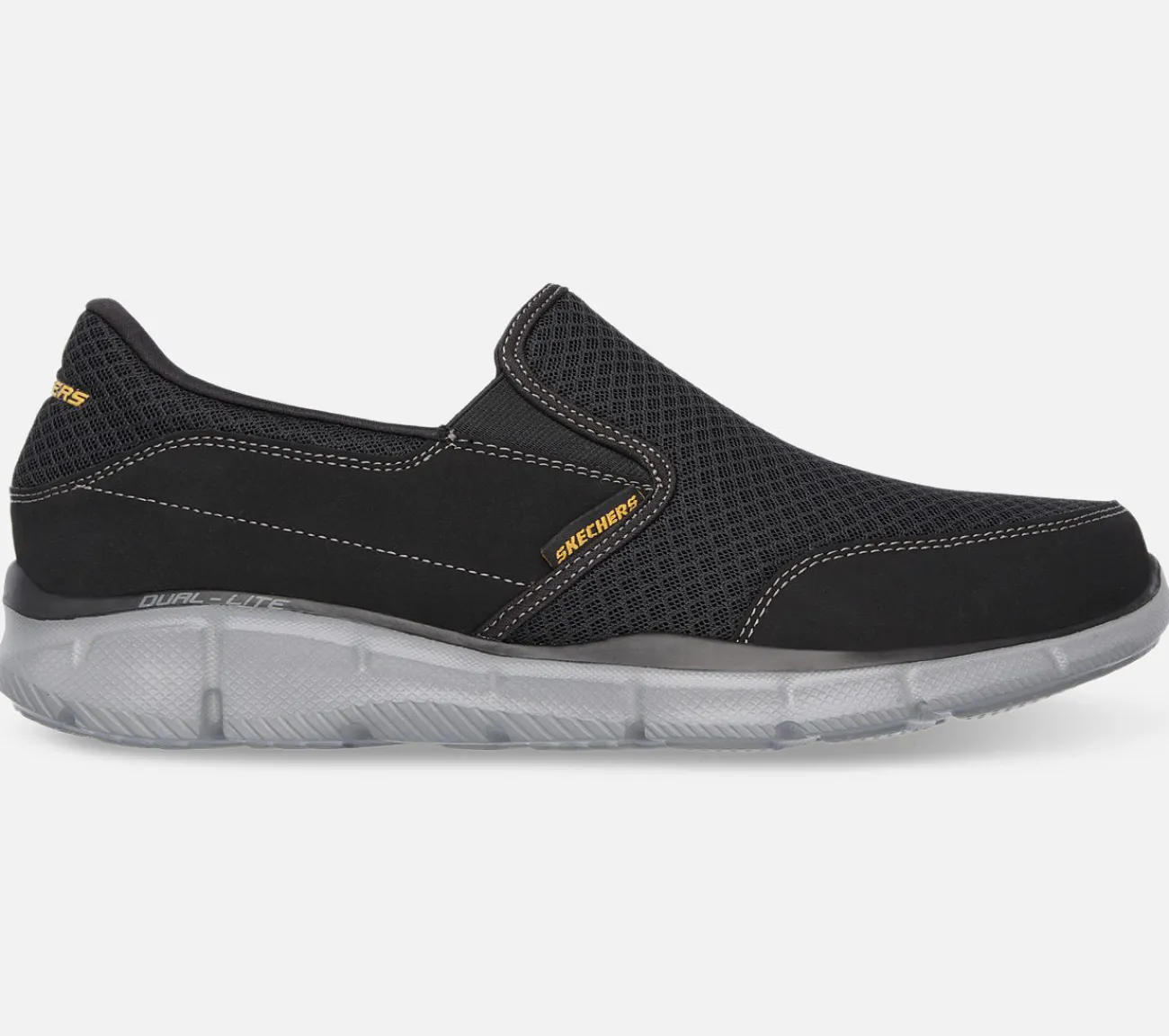 Oplev fantastisk komfort og sporty stil endnu nemmere med Skechers Equalizer – Persistent. Denne sporty slip-on har en glat overdel af kunstlæder og mesh med en moc-tå og en polstret Memory Foam indersål.