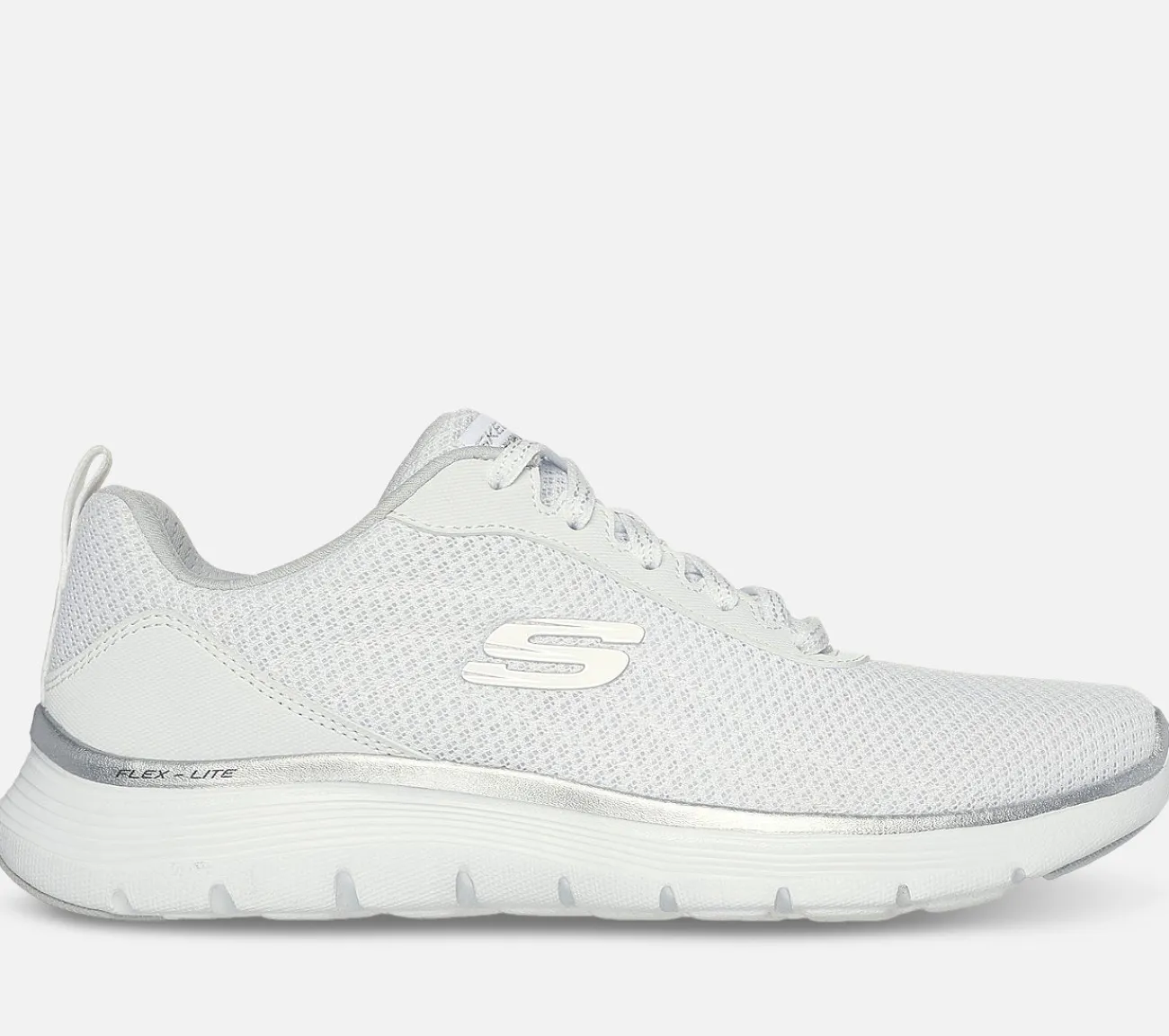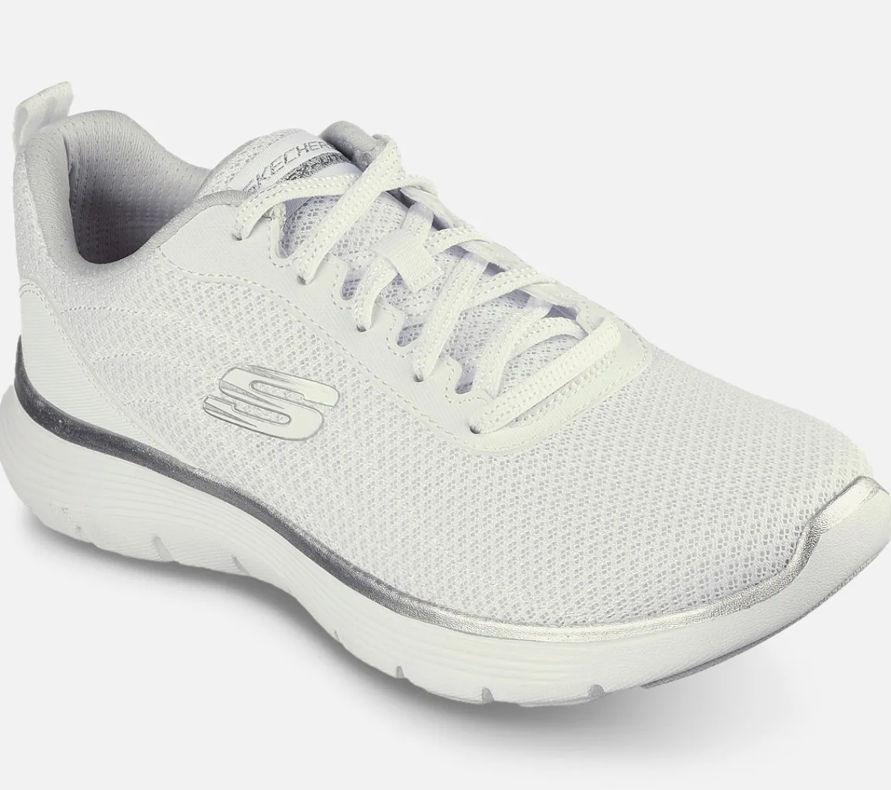 Vis din sporty athleisure-stil frem i komfort med Skechers Flex Appeal 5.0 – Uptake. Denne veganske sko har en polstret atletisk mesh-overdel med metalliske detaljer og en polstret Skechers Air-Cooled Memory Foam indersål.