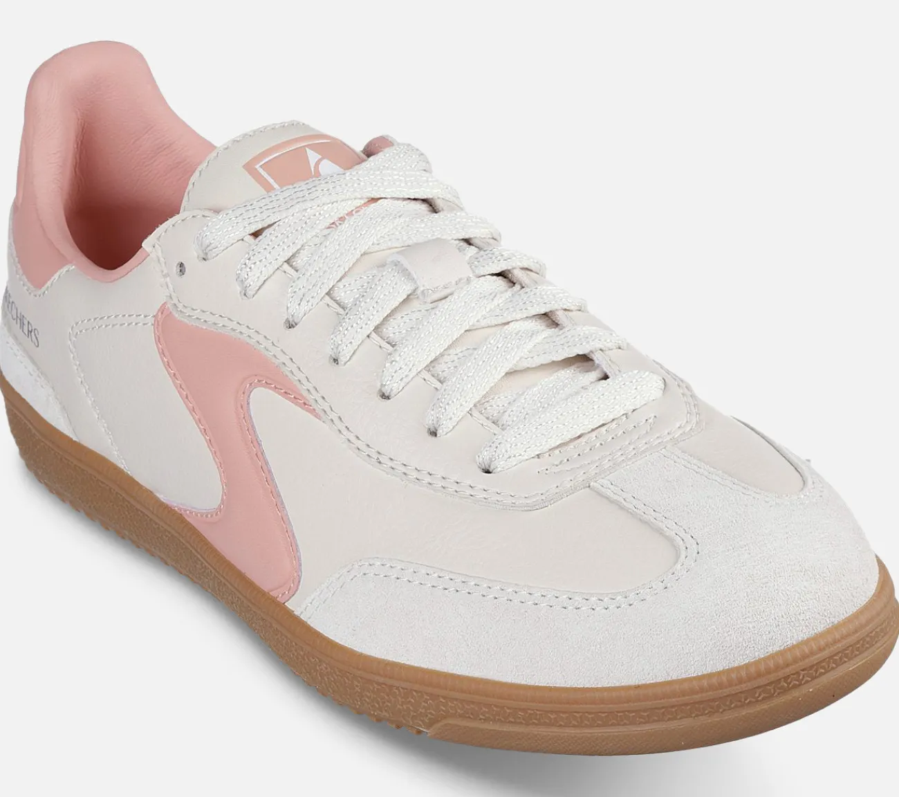 En moderne klassiker møder frisk komfort i Skechers Hotshot – Kickoff. Denne snøresko i court-stil har en duraleather-overdel med overlejringer af svineskind, kontrasterende ‘S’-logo på siden og en polstret Skechers Air-Cooled Memory Foam-indersål.