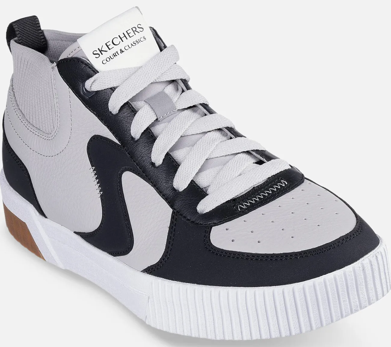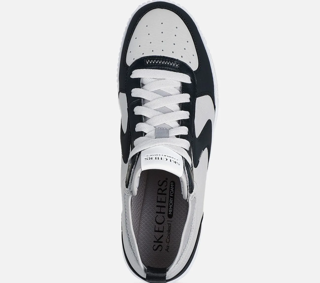 En klassisk court-inspireret silhuet får et frisk pust med Skechers Jade – Alerro. Denne mellemhøje sneaker har en overdel i læder med imiterede læderdetaljer, ribstrikket krave og en polstret Skechers Air-Cooled Memory Foam indersål.