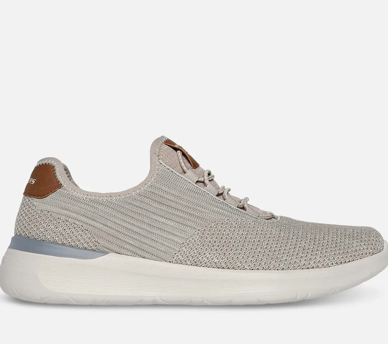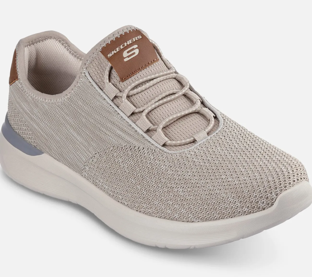 Komfort og sporty, slankt design forenes i Skechers Lattimore – Coringa. Denne Classic Fit slip-on sko har en overdel i mesh-strik med en polstret Skechers Air-Cooled Memory Foam indersål og Skechers Goga Mat Arch for ekstra støtte.