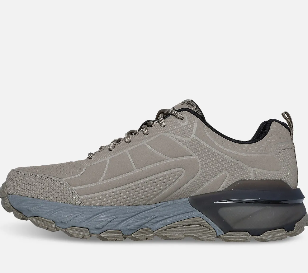 Udforsk udendørs i høj trækkraft og komfort med Skechers Max Protect – Irongaurd. Denne snøreudendørs trail sko har en Skechers Air-Cooled Memory Foam indersål samt en holdbar Goodyear gummi ydersål.