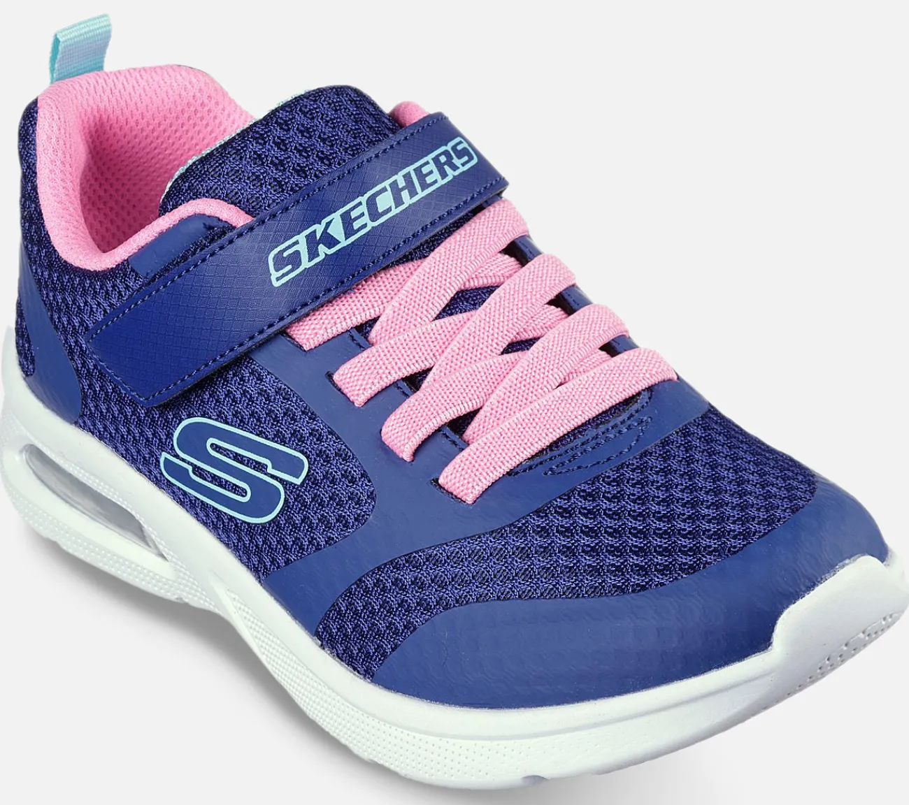 Tilføj ekstra komfortabel polstring til din sporty stil med Skechers Microspec Max – Racer Gal. Denne pull-on sko har en mesh-overdel med strækbare snørebånd, rem over vristen og en synlig Skech-Air airbag mellemsål.