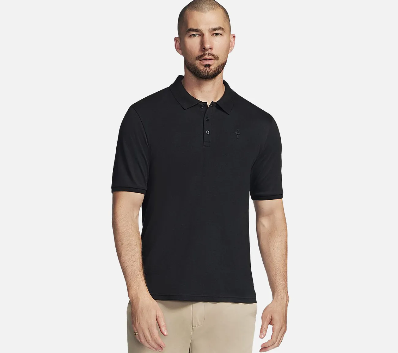 Komfort i fritidsstil kombineres med alsidig stil i Skechers Off Duty Polo. Med et GO DRI Pique stof i en poloshirt med korte ærmer, krave og smarte detaljer.