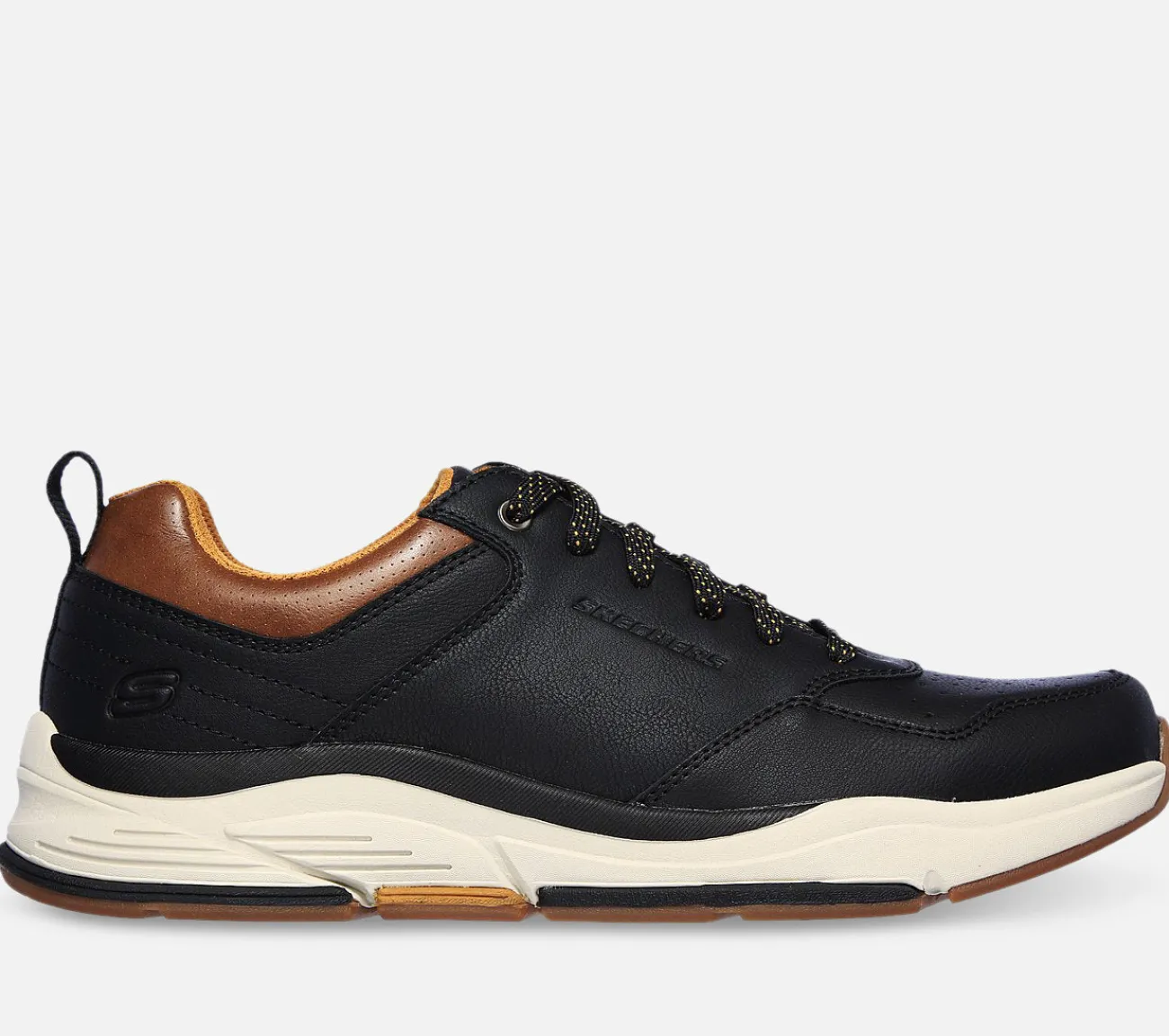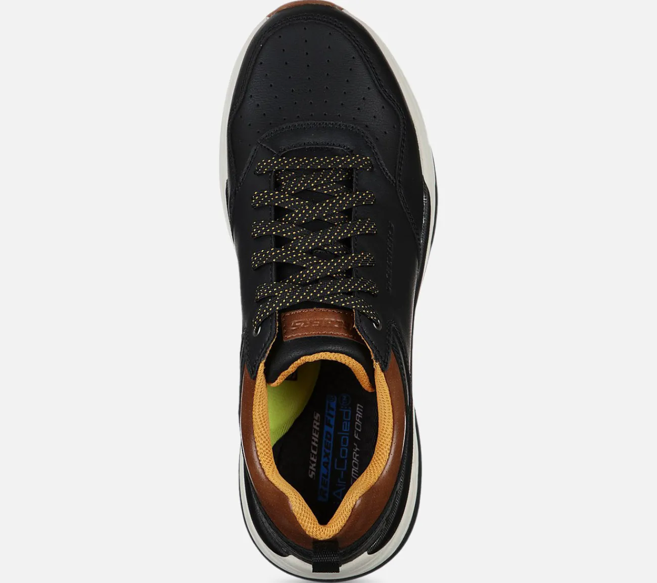 Få nogle alsidige stilpoint med langvarig komfort i Skechers Relaxed Fit: Benago – Treno. Med en snøret læderoverdel og en Skechers Air-Cooled Memory Foam indersål og Skechers Goga Mat Arch polstring for ekstra støtte.