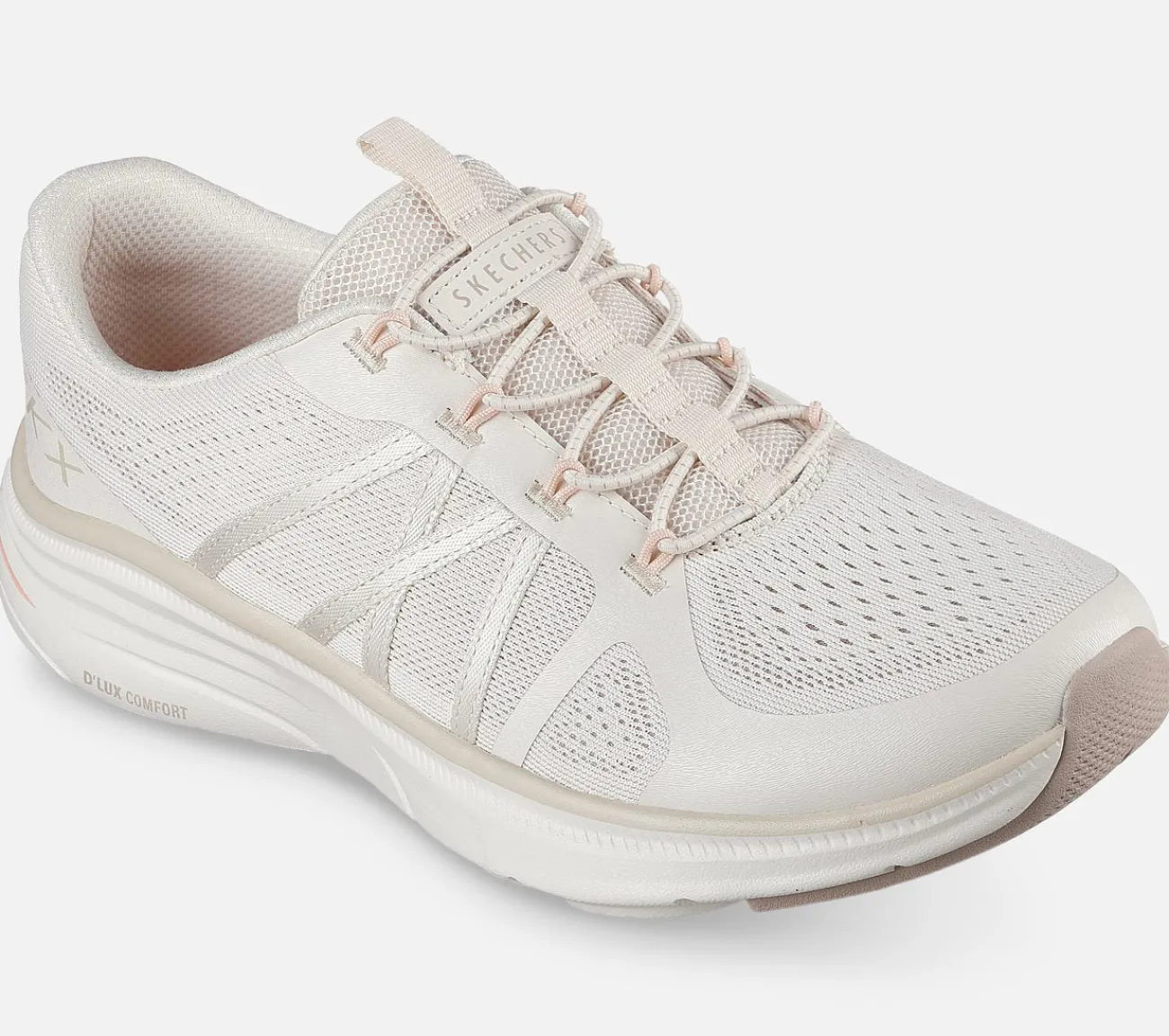 Tag det roligt i sporty komfort med ekstra plads i Skechers Relaxed Fit: D’Lux Comfort 2.0 – Victory. Denne maskinvaskbare, veganske sneaker har en konstrueret mesh-overdel med satinbåndsoverlejringer, faste stretch-snørebånd og en polstret Skechers Air-Cooled Memory Foam indersål.