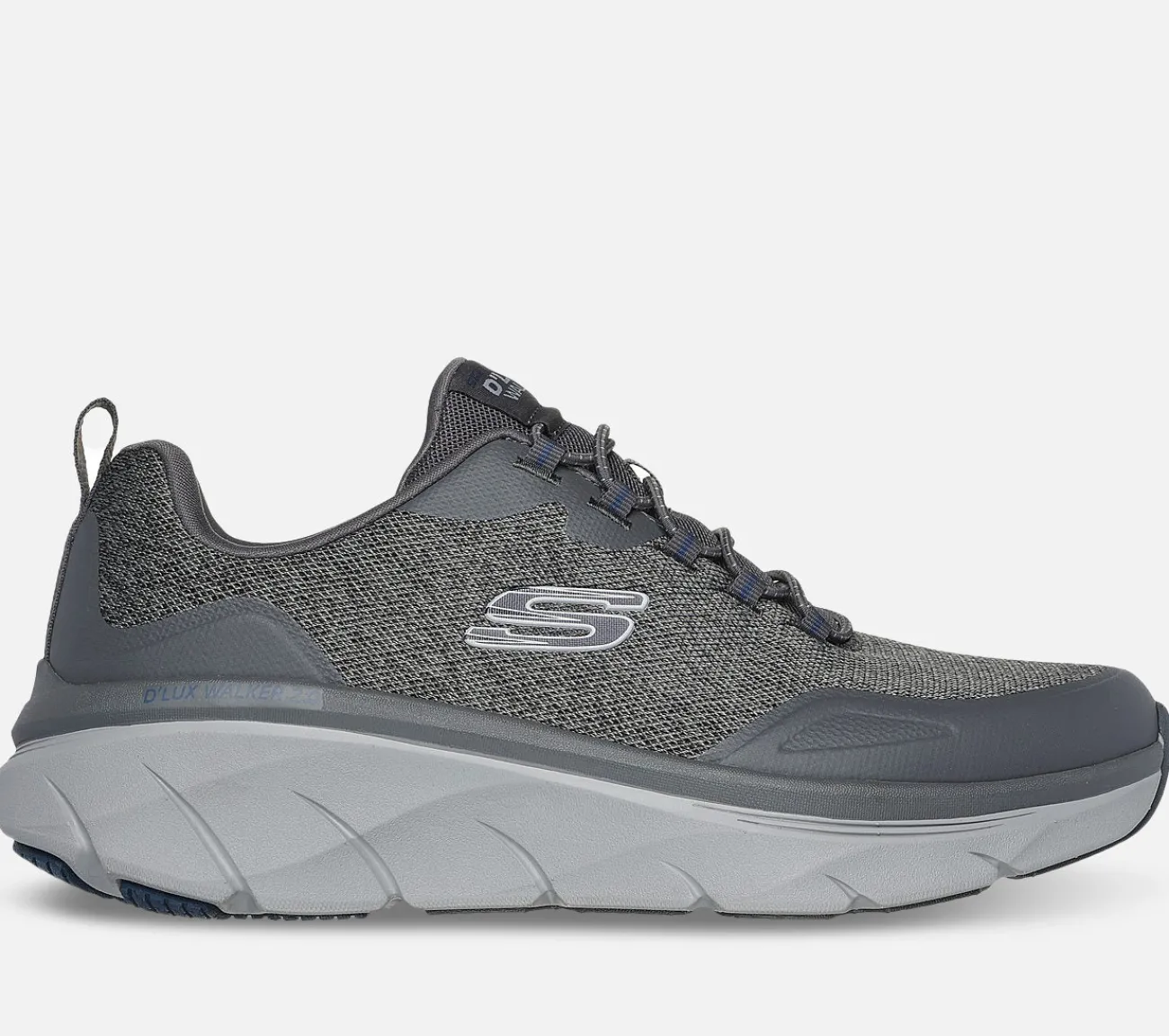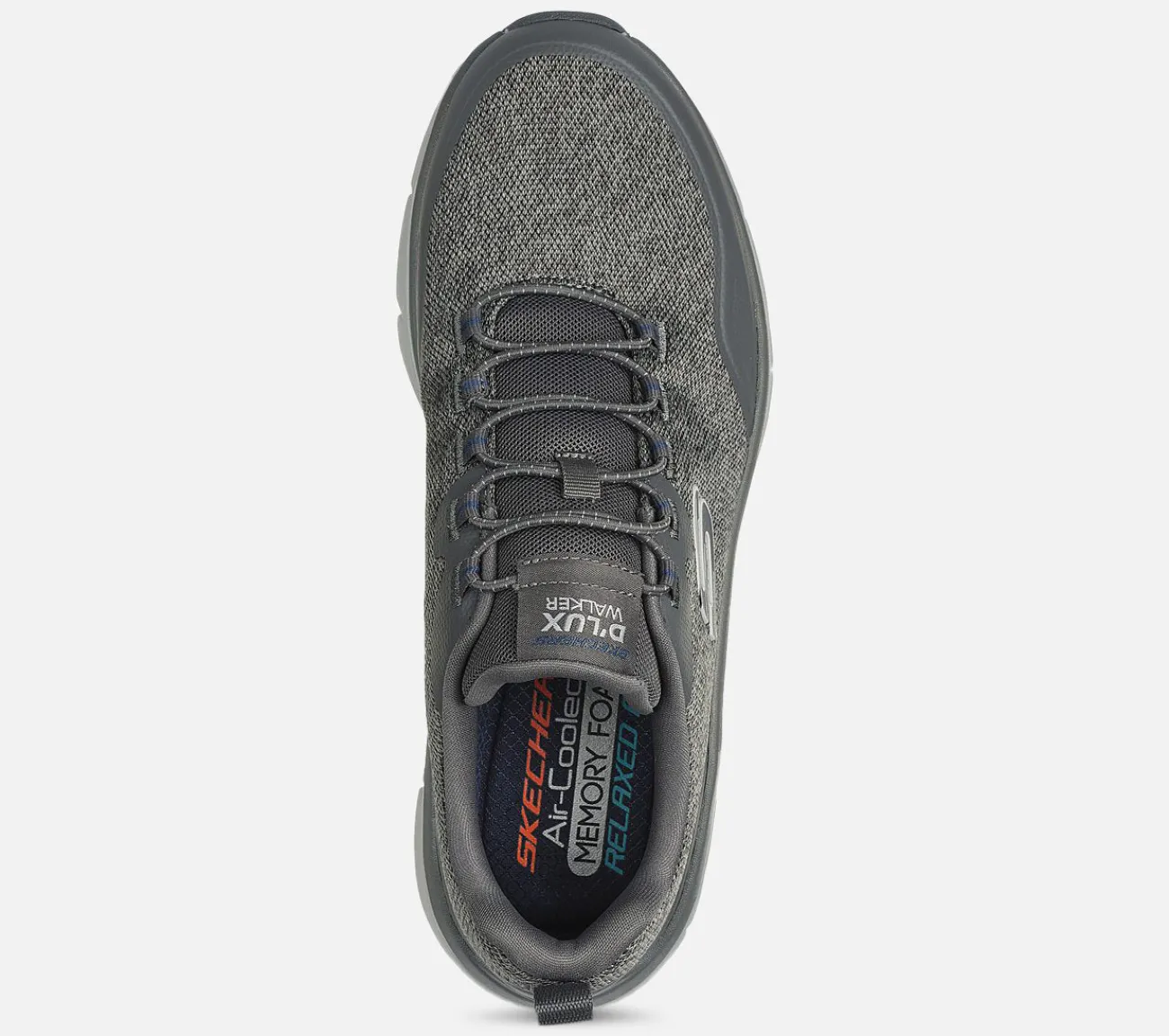 Nyd længere gåture med velpolstret komfort iført Skechers Relaxed Fit: D’Lux Walker 2.0 – Steadyway. Denne veganske sporty sko har en overdel i mesh og syntetisk materiale med strækbare snørebånd samt en polstret Skechers Air-Cooled Memory Foam indersål.