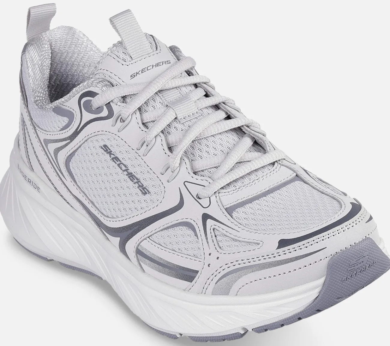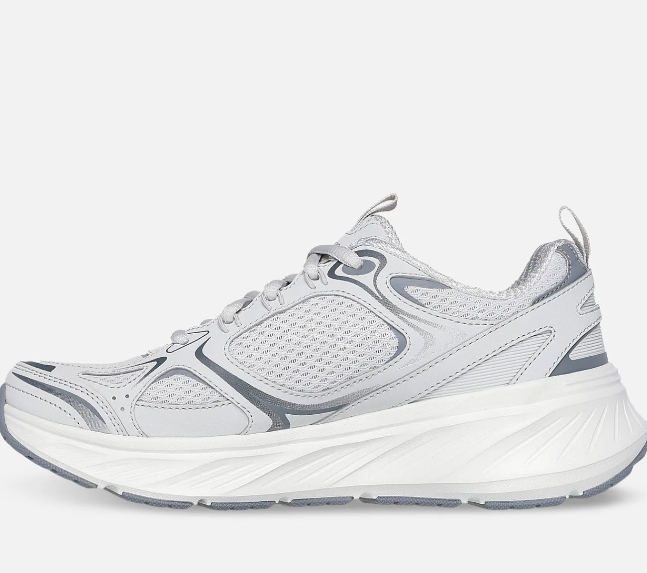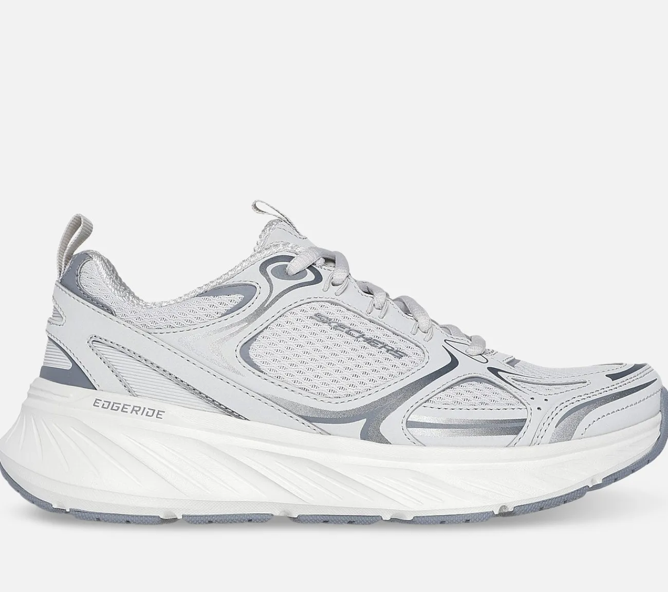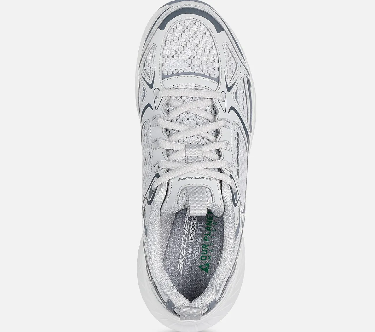 Nyd velpolstret ydeevne med Skechers Relaxed Fit: Edgeride – Silver Eclipse. Overdelen er fremstillet med mindst 20% genanvendt materiale efter vægt for at reducere affald. Denne veganske atletiske sko har en mesh overdel med snørebånd, en velpolstret mellemsål og en Skechers Air-Cooled Memory Foam indersål. Denne sko er en del af Our Planet Matters kollektionen: Godt for dine fødder. Godt for verden.