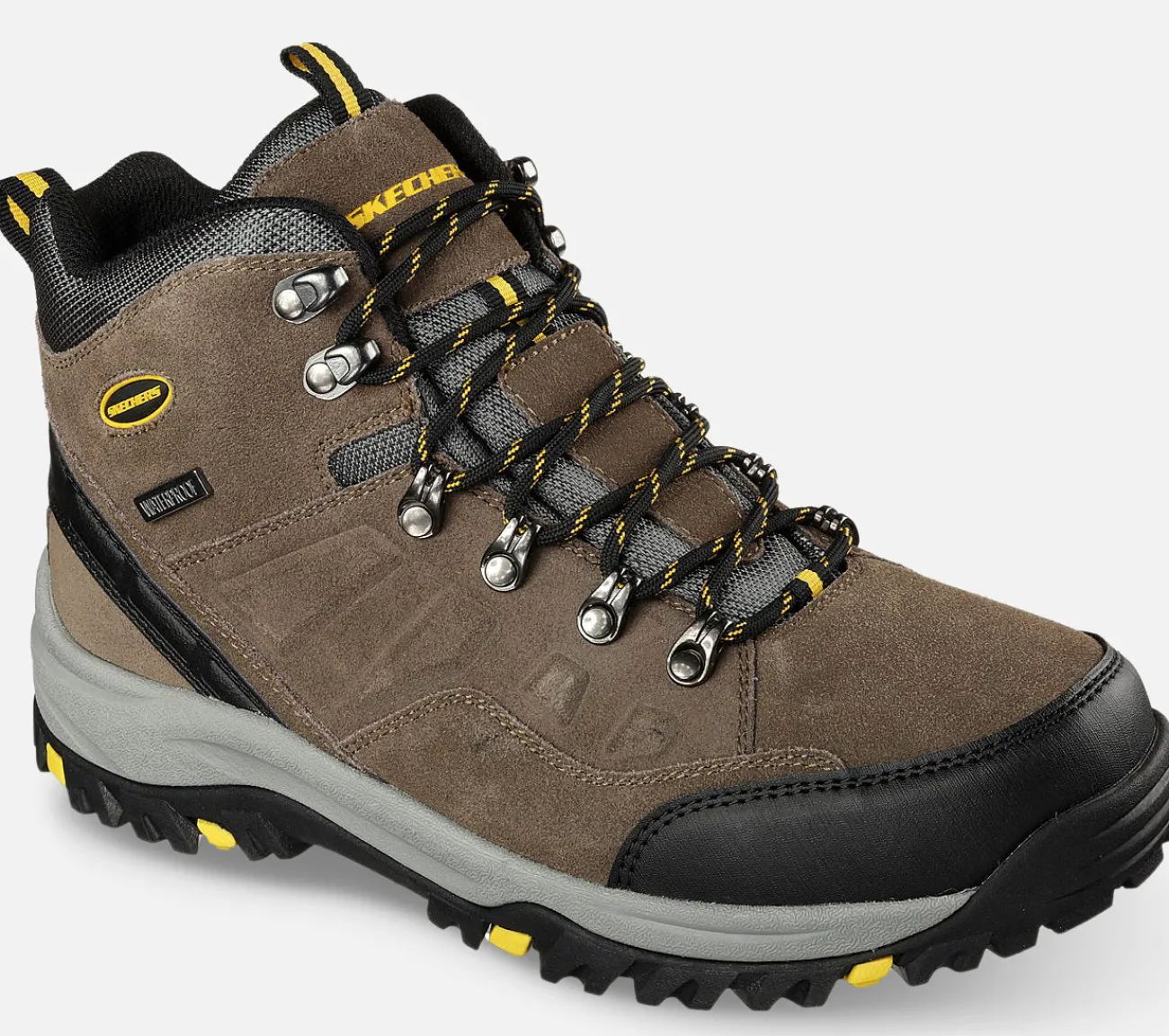 Hold dig i gang under alle forhold med komfort og robust stil i Skechers Relaxed Fit: Relment – Pelmo. Denne vandrestøvle med snørebånd har en vandtæt overdel i ruskind, syntetisk materiale og mesh samt en polstret Skechers Air-Cooled Memory Foam indersål.