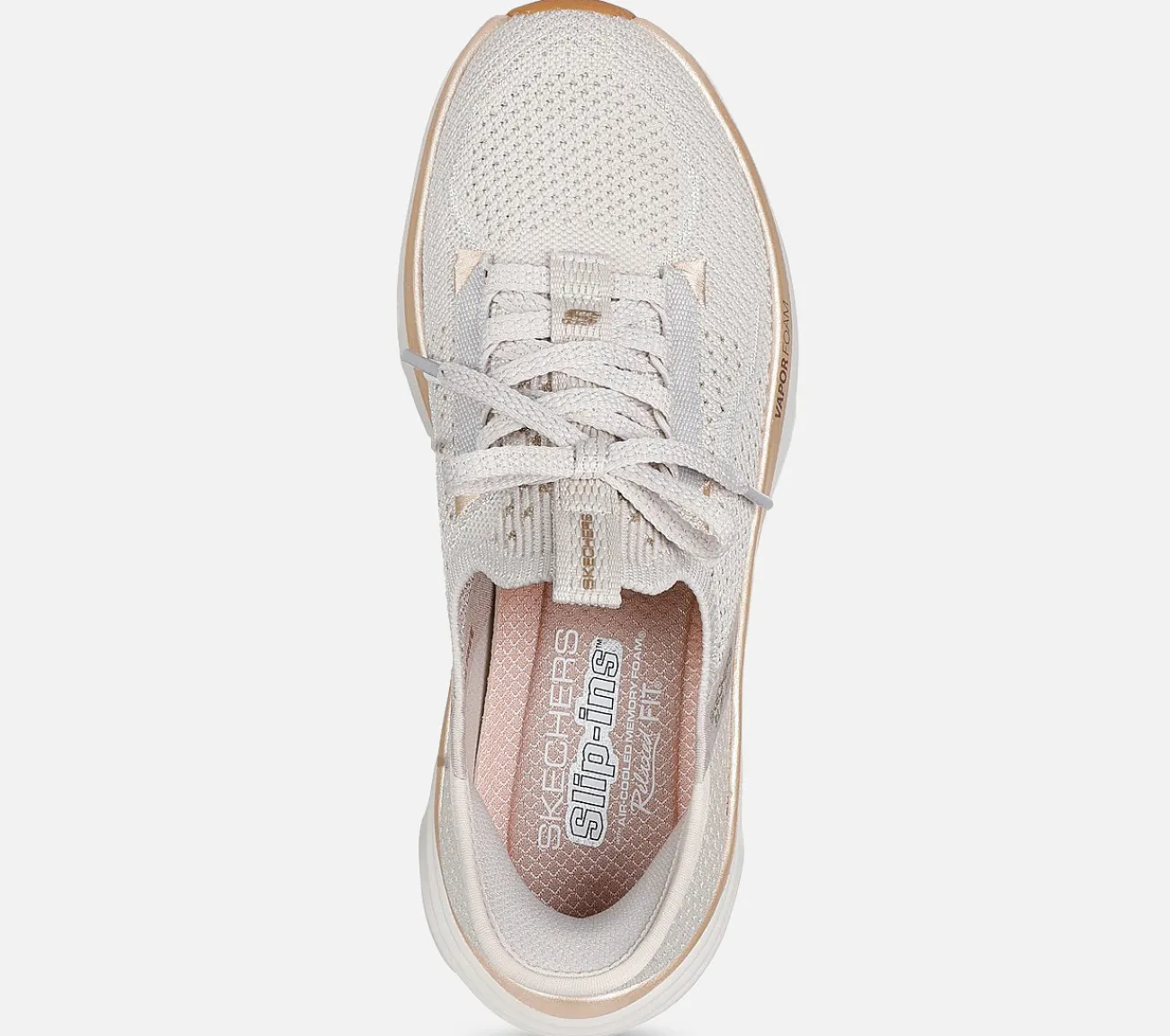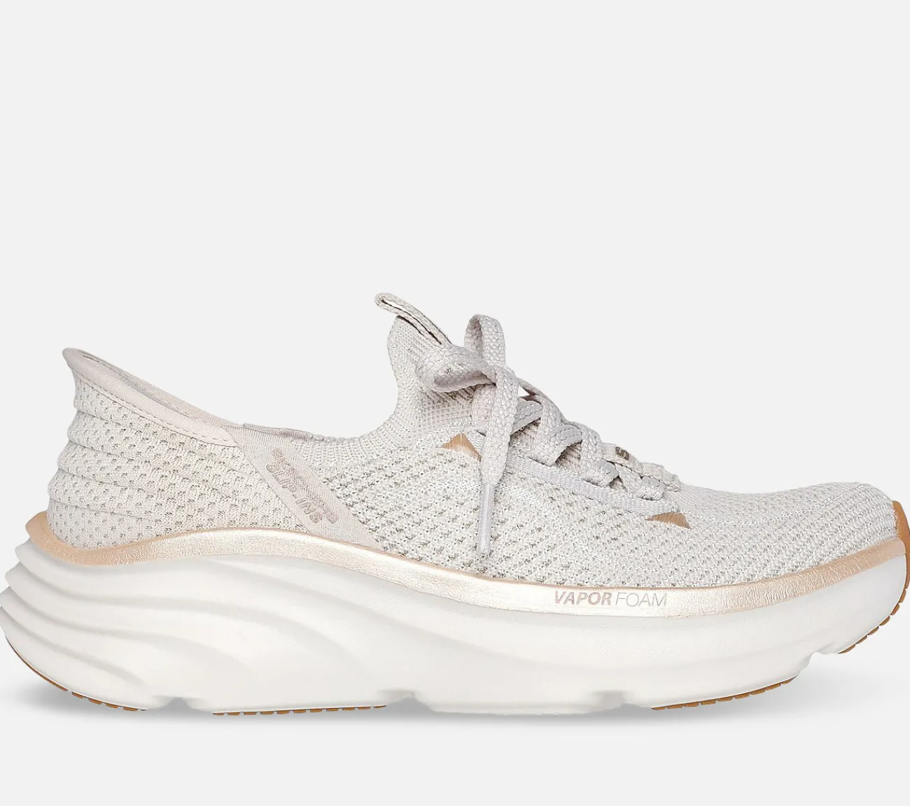 Få den letteste, velpolstrede, sporty komfort med Skechers Hands Free Slip-ins: Relaxed Fit: D’Lux Vapor – Evening Glow. Designet med vores eksklusive Heel Pillow, har denne veganske sko med faste snørebånd en Stretch Fit konstrueret strikoverdel med metalliske detaljer, Vapor Foam mellemsål og en polstret Skechers Air-Cooled Memory Foam indersål.
