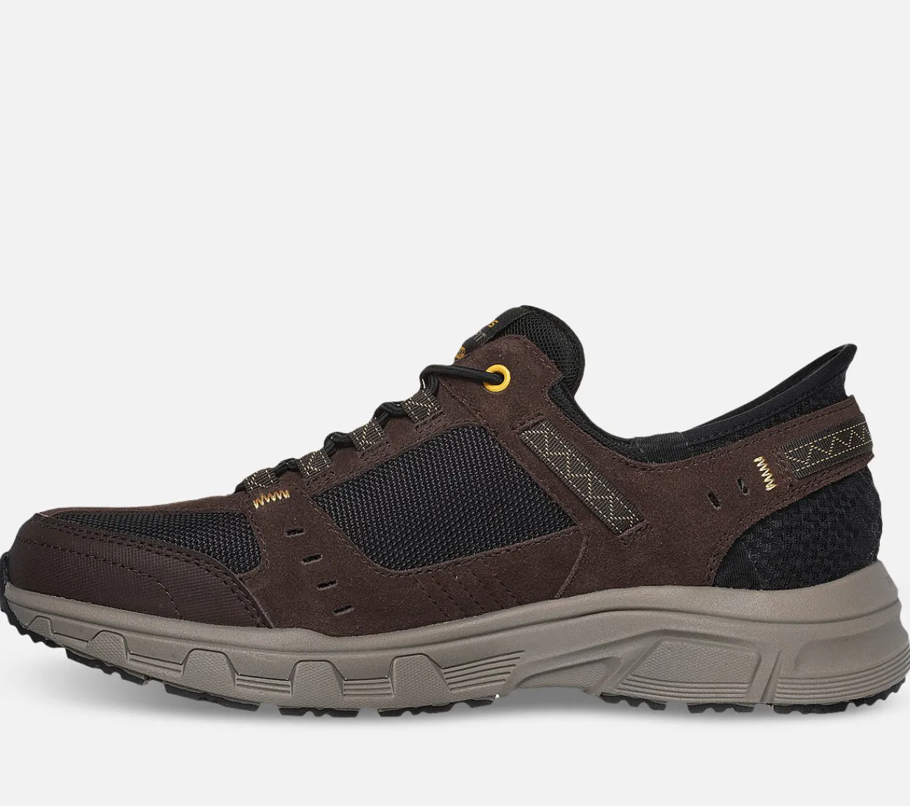Gå på stierne i afslappet komfort med Skechers Relaxed Fit: Oak Canyon – Consistent Winner. Denne afslappede udendørs trail snøresko har en overdel i ruskind, syntetisk materiale og mesh med en Skechers Air-Cooled Memory Foam indersål.
