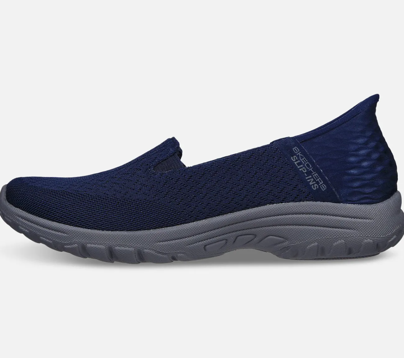 Skechers’ Slip-Ins teknologi giver dig en stabil hælkappe og en blød polstring, der tilpasser sig din hæls naturlige kurve. Dette er en håndfri funktion, der gør det nemt for dig at træde i skoen uden at bruge dine hænder.