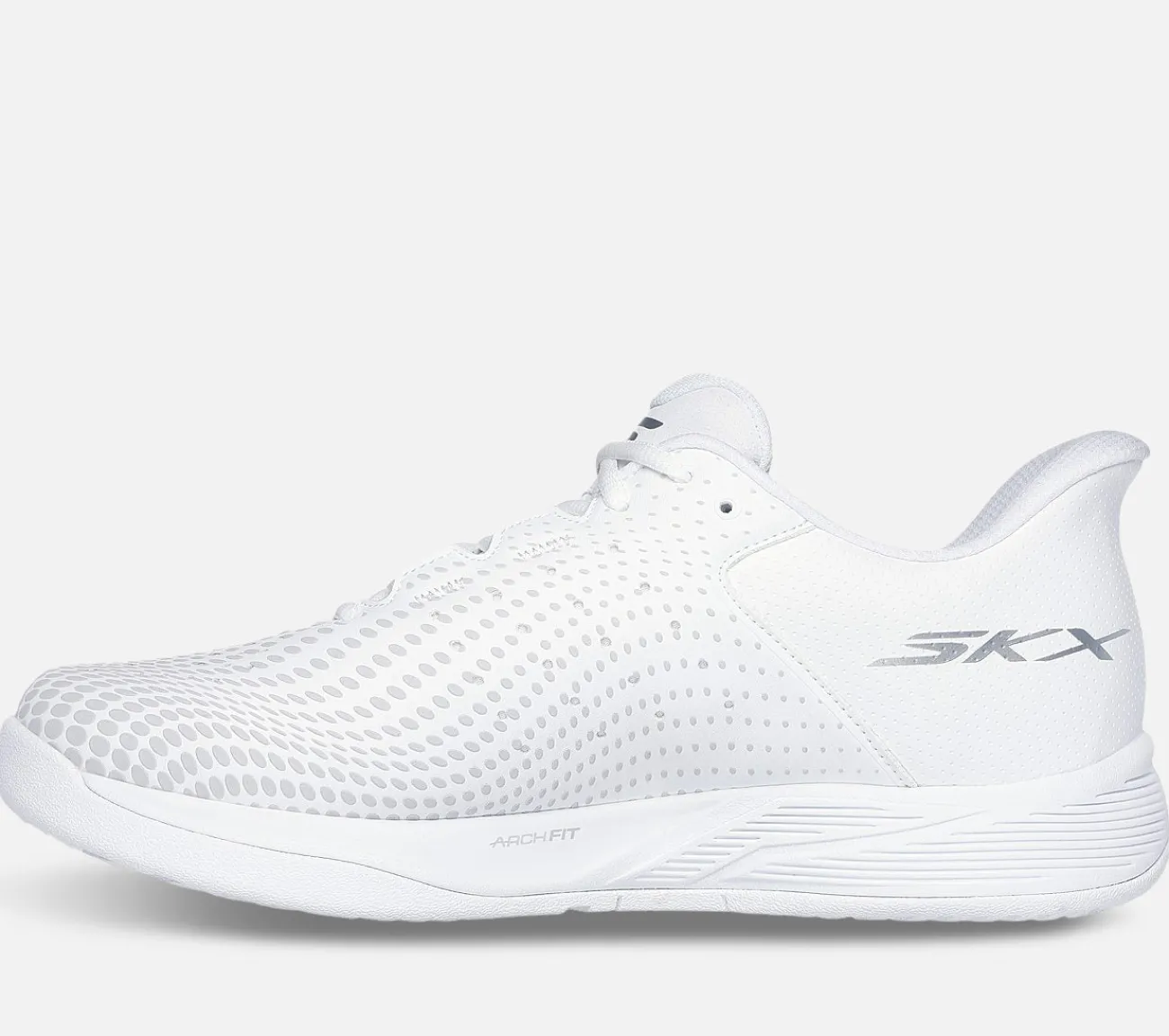 Gør dig klar til kampene med fantastisk komfort, der aldrig svigter, når du bærer Skechers Hands Free Slip-ins Relaxed Fit: Viper Court Reload – designet til Pickleball. Denne rummelige slip-ins har vores eksklusive Heel Pillow med en atletisk mesh og syntetisk screen print overdel, aftagelig Arch Fit indersål og let ULTRA FLIGHT polstring. Dette maskinvaskbare design er komplet med en Goodyear gummi ydersål, der er bygget til øget holdbarhed og kontrol på banens overflade.