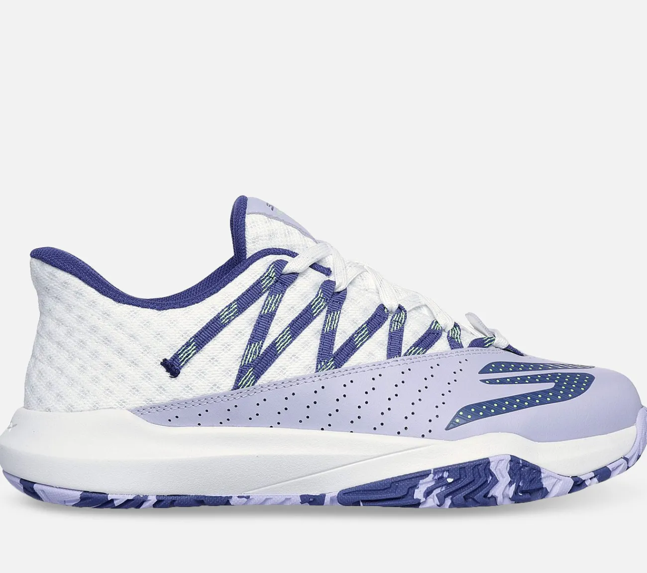 Tag dit spil til næste niveau med Skechers Relaxed Fit: Viper Court Rally. Denne snørelukkede pickleball-sko har en mesh-overdel med perforerede læderoverlejringer og en let Move Foam indersål. Designet fuldendes med en Goodyear ydersål, der øger holdbarheden og giver mulighed for kontrollerede glid specielt til pickleballbanens underlag.