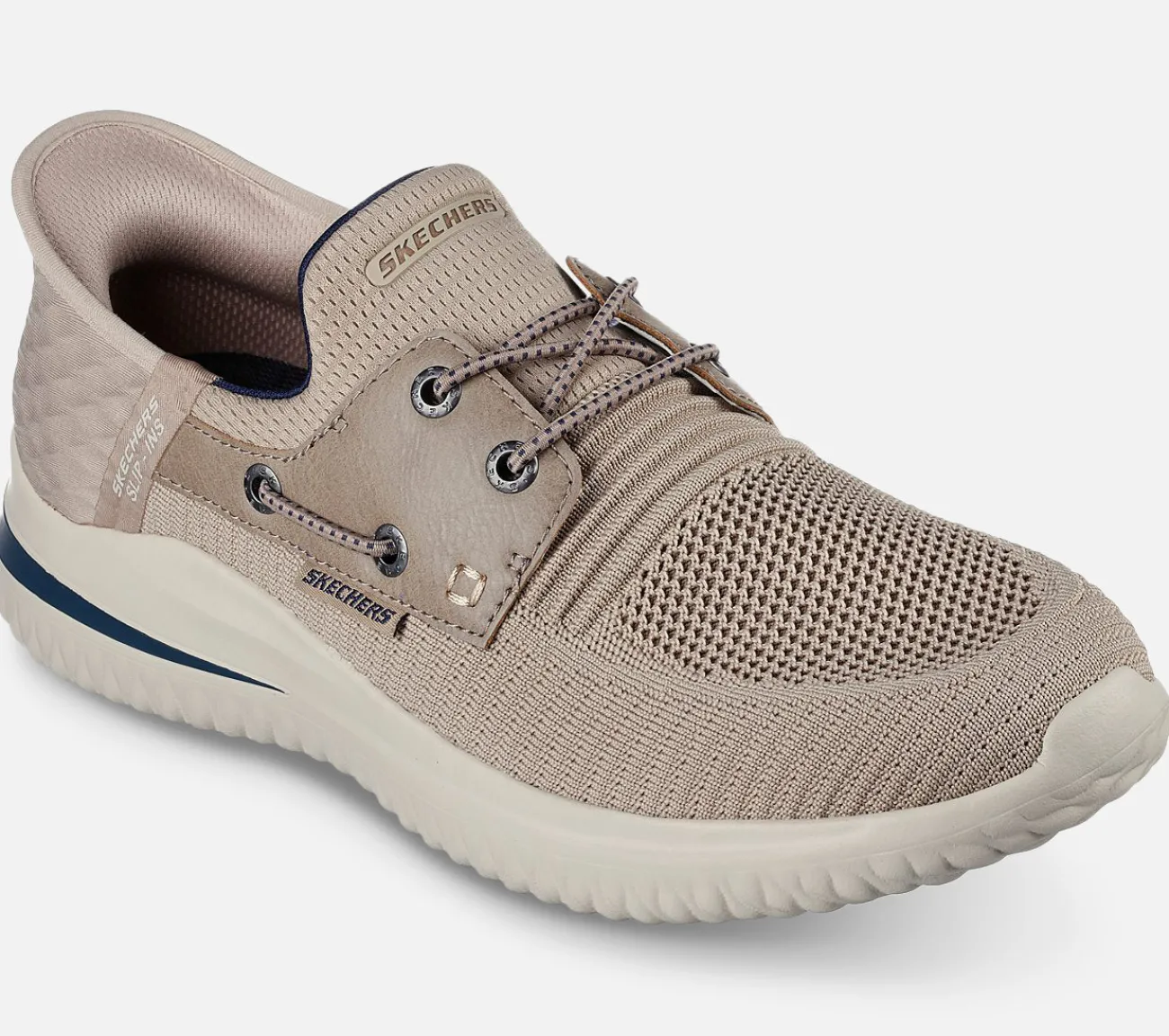 Træd blot ned i skoen og gå med Skechers Hands Free Slip-ins: Delson 3.0 – Roth. Designet med vores eksklusive Heel Pillow. Denne sko har en specialdesignet strik- og syntetisk overdel med elastiske snørebånd, en Skechers Air-Cooled Memory Foam komfort indersål og Goga Mat Arch polstring for ekstra støtte.