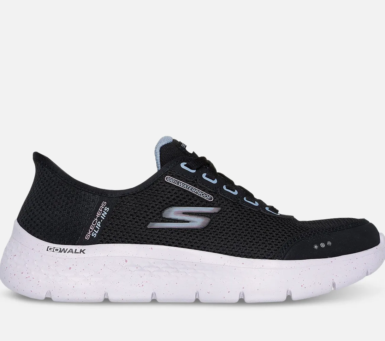 Træd ind i praktisk gåkomfort med Skechers Hands Free Slip-ins GO WALK Flex – Clear Creek. Dette vandtætte snøredesign har en overdel i mesh og syntetisk materiale, som sørger for at holde dine fødder tørre. Designet med Skechers Air-Cooled Memory Foam indersål og let ULTRA GO polstring for høj komfort uanset aktivitet og Flex Pillars for ekstra støtte, som giver fleksibelt greb på flere overflader.