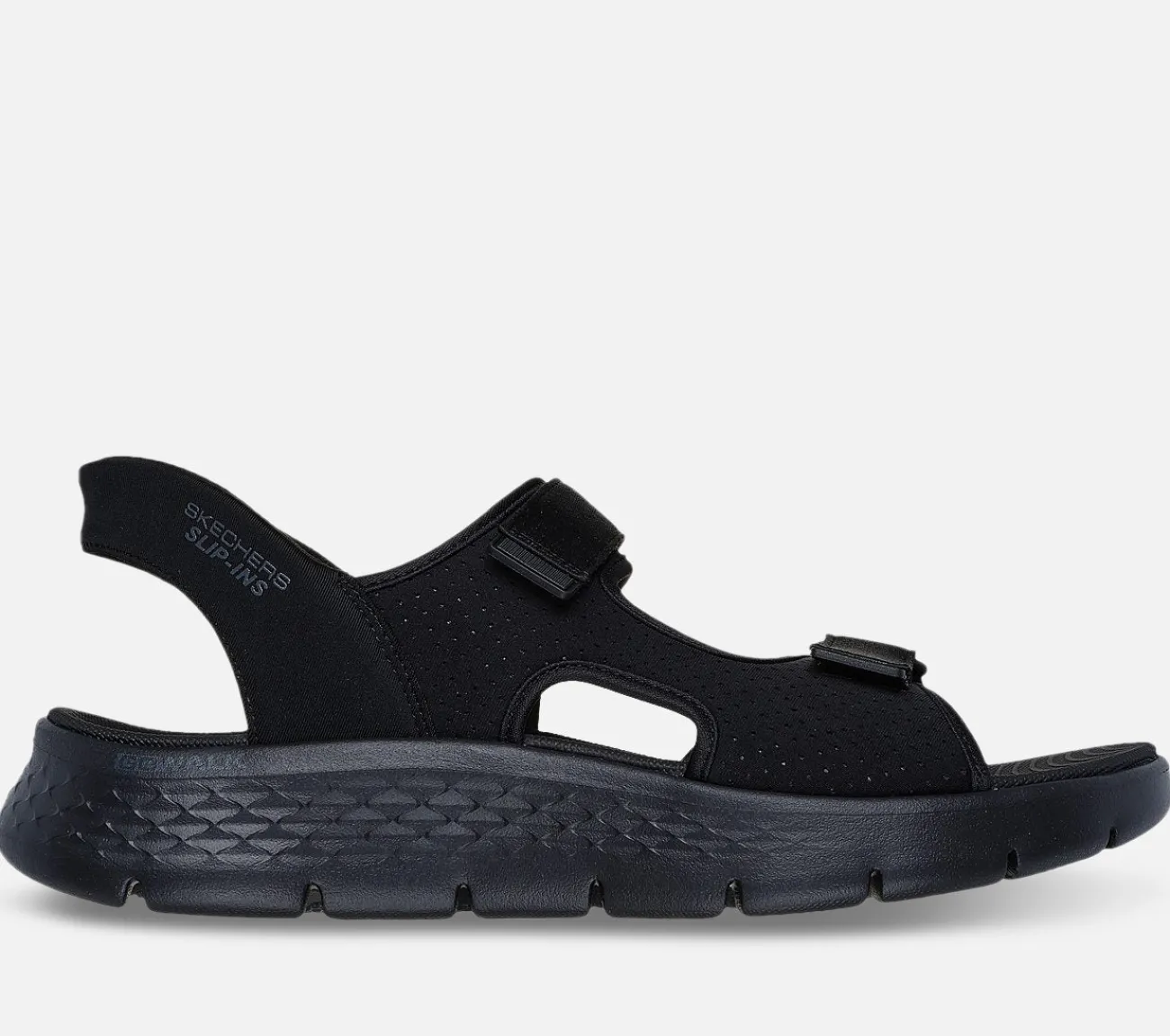 Oplev en ubesværet måde at bære din yndlingssportssandal på med Skechers Hands Free Slip-ins®: GO WALK® Flex Sandal – Easy Entry. Denne atletiske sandal med stropper er designet med vores Heel Pillow og har en vævet overdel med en justerbar strop over vristen, en kontureret Goga Mat®-indersål, ULTRA GO®-letvægtspolstring og et bagstykke om hælen.