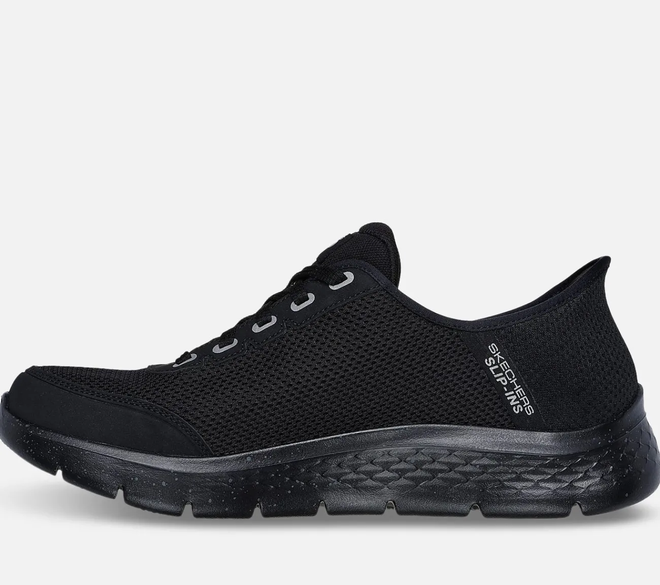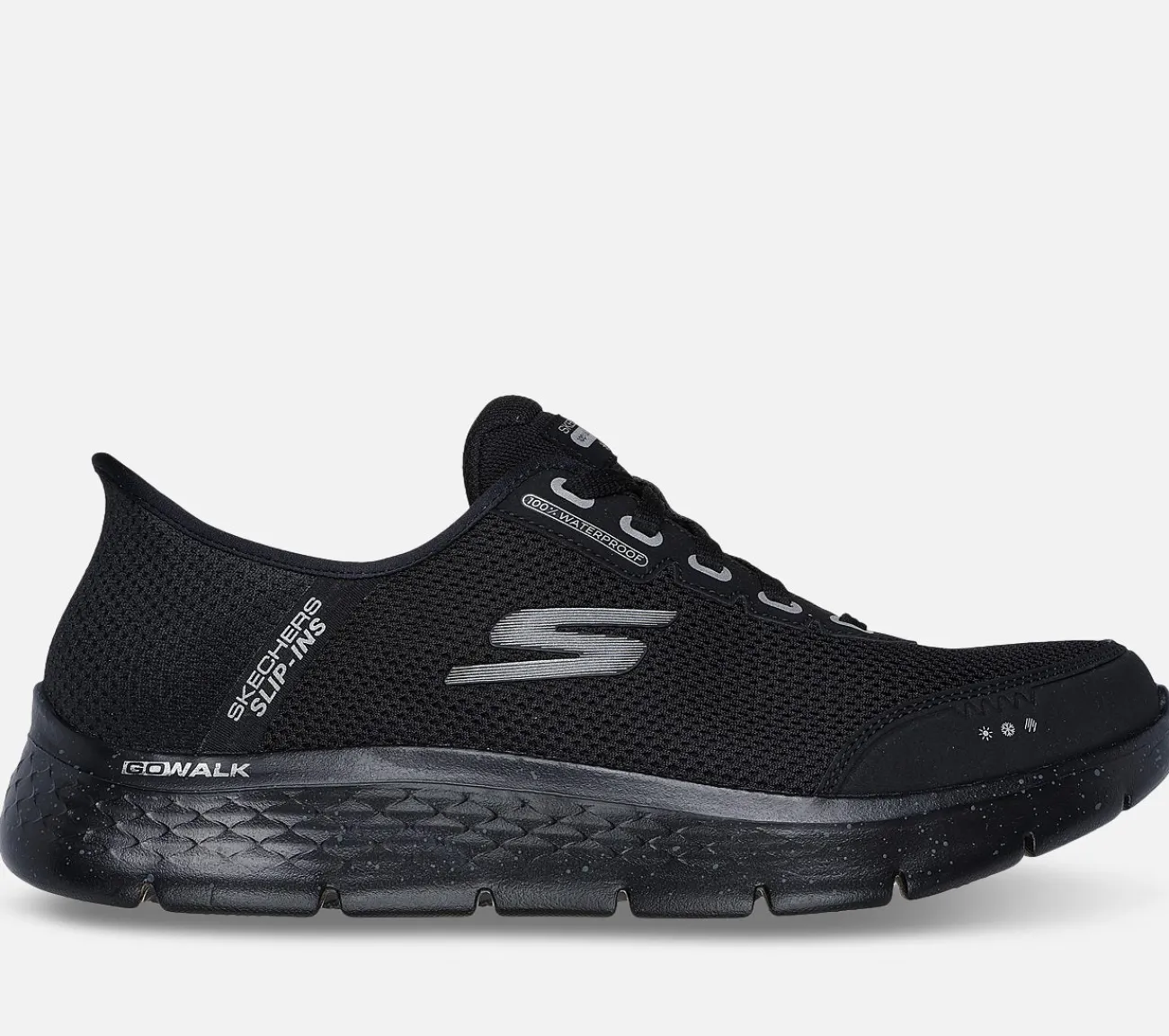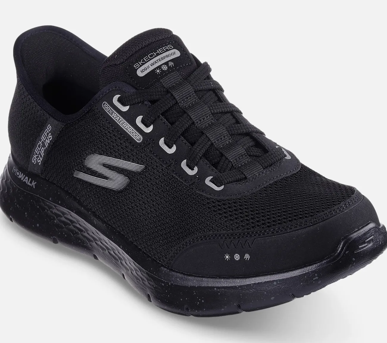 Træd ind i en behagelig og vandtæt komfort med Skechers Hands Free Slip-ins GO WALK Flex. Designet med vores eksklusive Heel Pillow har denne snøresko et atletisk mesh og syntetisk overdel med 100% vandtæt Breathe Easy Technology. Skoen har en Skechers Air-Cooled Memory Foam indersål og let ULTRA GO polstring.