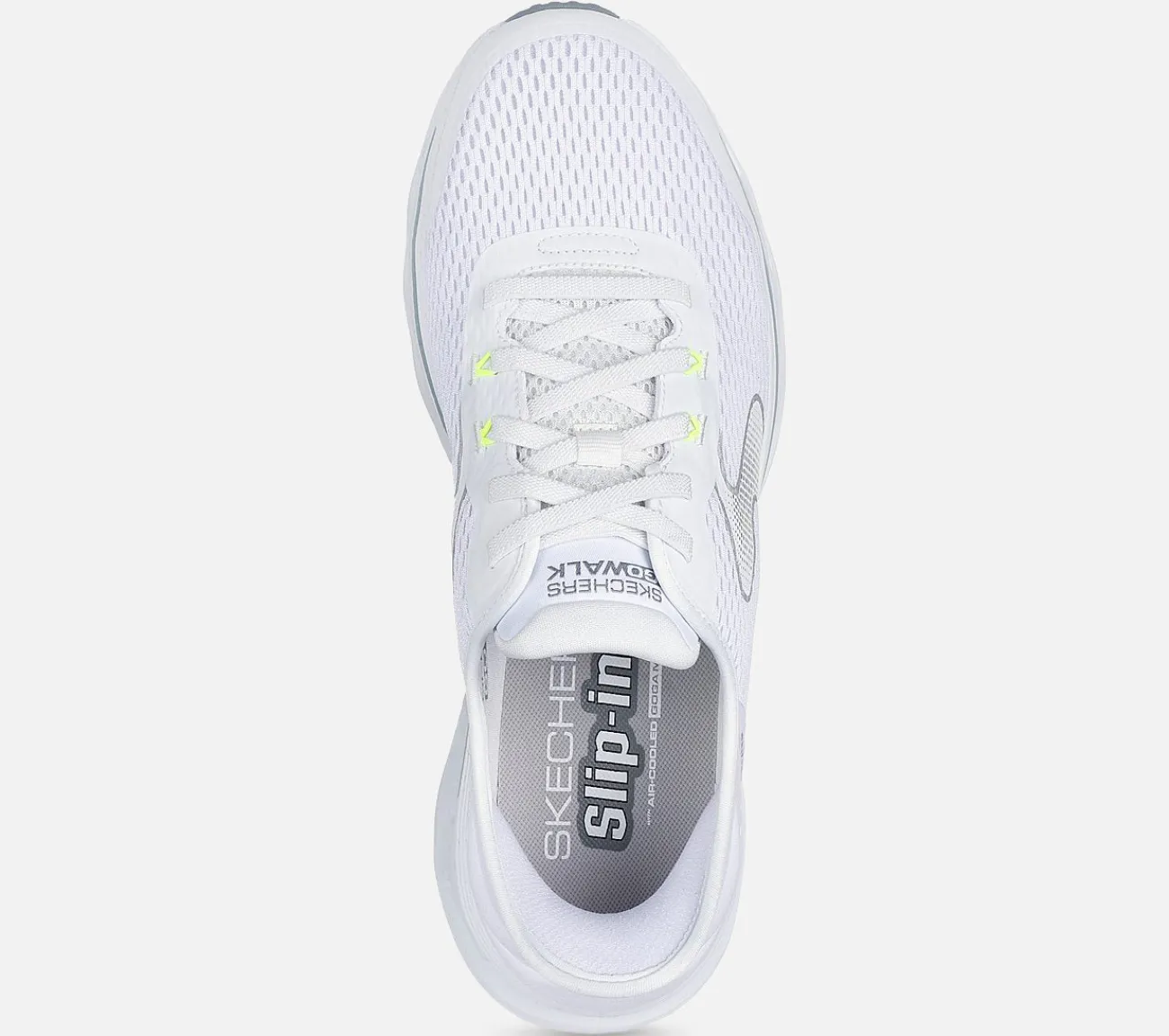Superfleksibel komfort og smart stil mødes i Skechers Hands Free Slip-ins® GO WALK® Glide-Step® 2.0 – Zander. De har en overdel af mesh med stræksnører, Skechers Air-Cooled Goga Mat-indersål og en Glide-Step®-letvægtsmellemsål kombineret med ULTRA GO®-polstring.