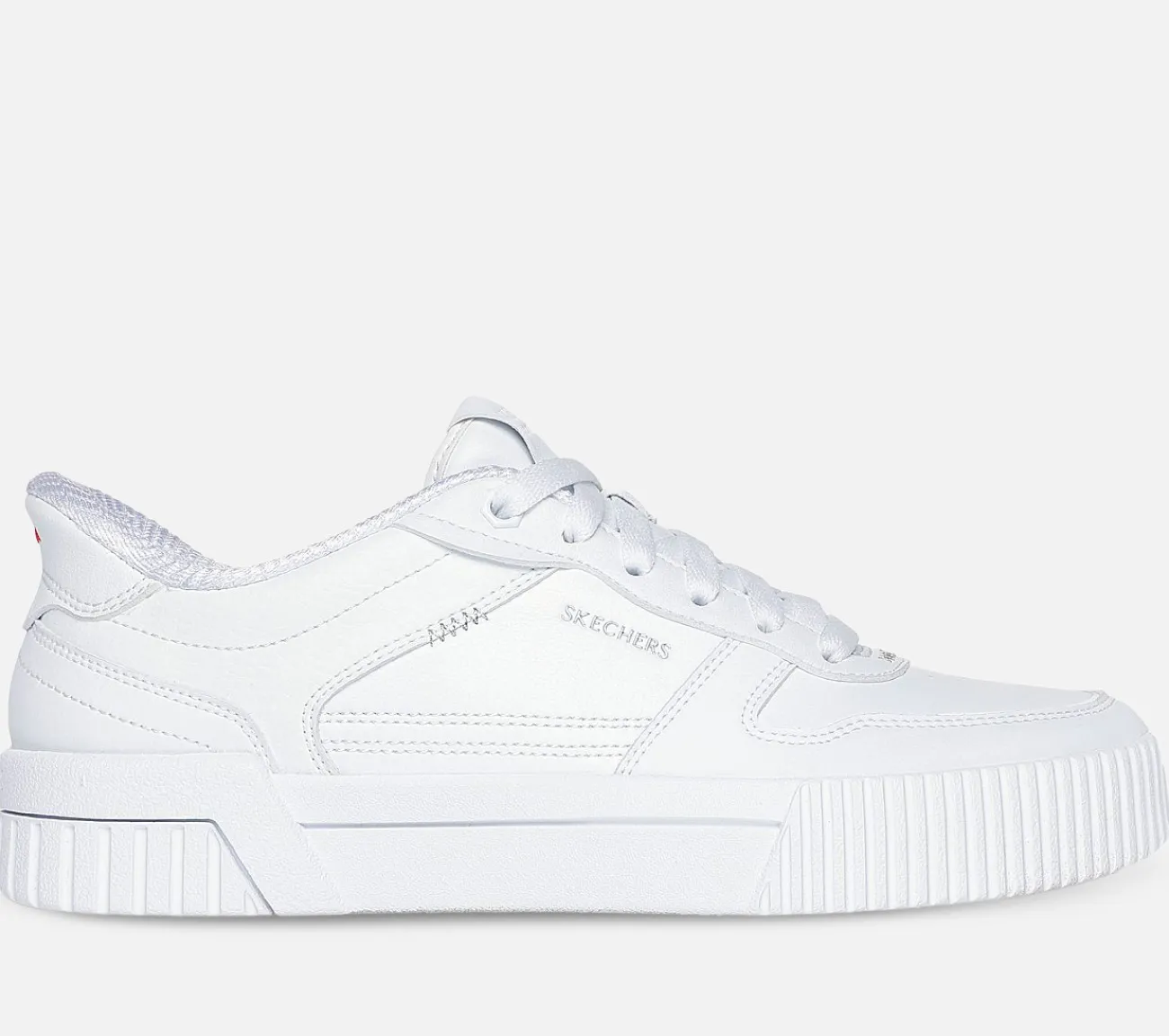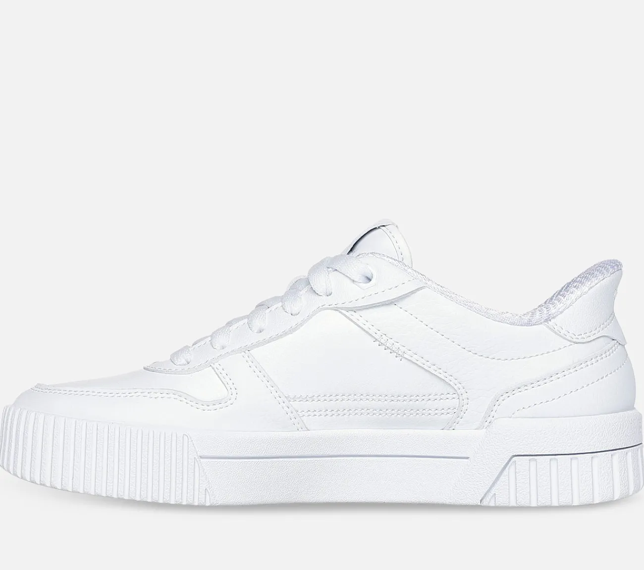 Just Step In med et klassisk streetlook med Skechers Hands Free Slip-ins®: Jade – Put It In Neutral. Denne slip-on har et ægte streetlook og er designet med vores eksklusive Heel Pillow, en overdel af duralæder med snører og en polstret Skechers Air-Cooled Memory Foam®-indersål.
