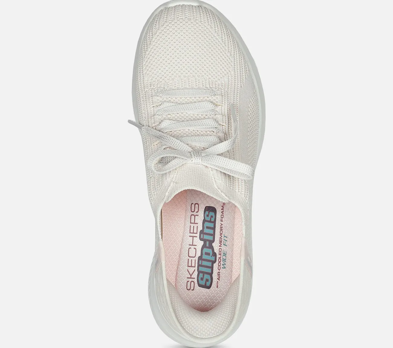 Med Slip-Ins teknologien får du en fast hælkappe og en polstring der former sig til din hæl og dens naturlige kurve. Det er Skechers’ håndfrie teknologi hvor du nemt kan træde i skoen uden at bruge dine hænder.