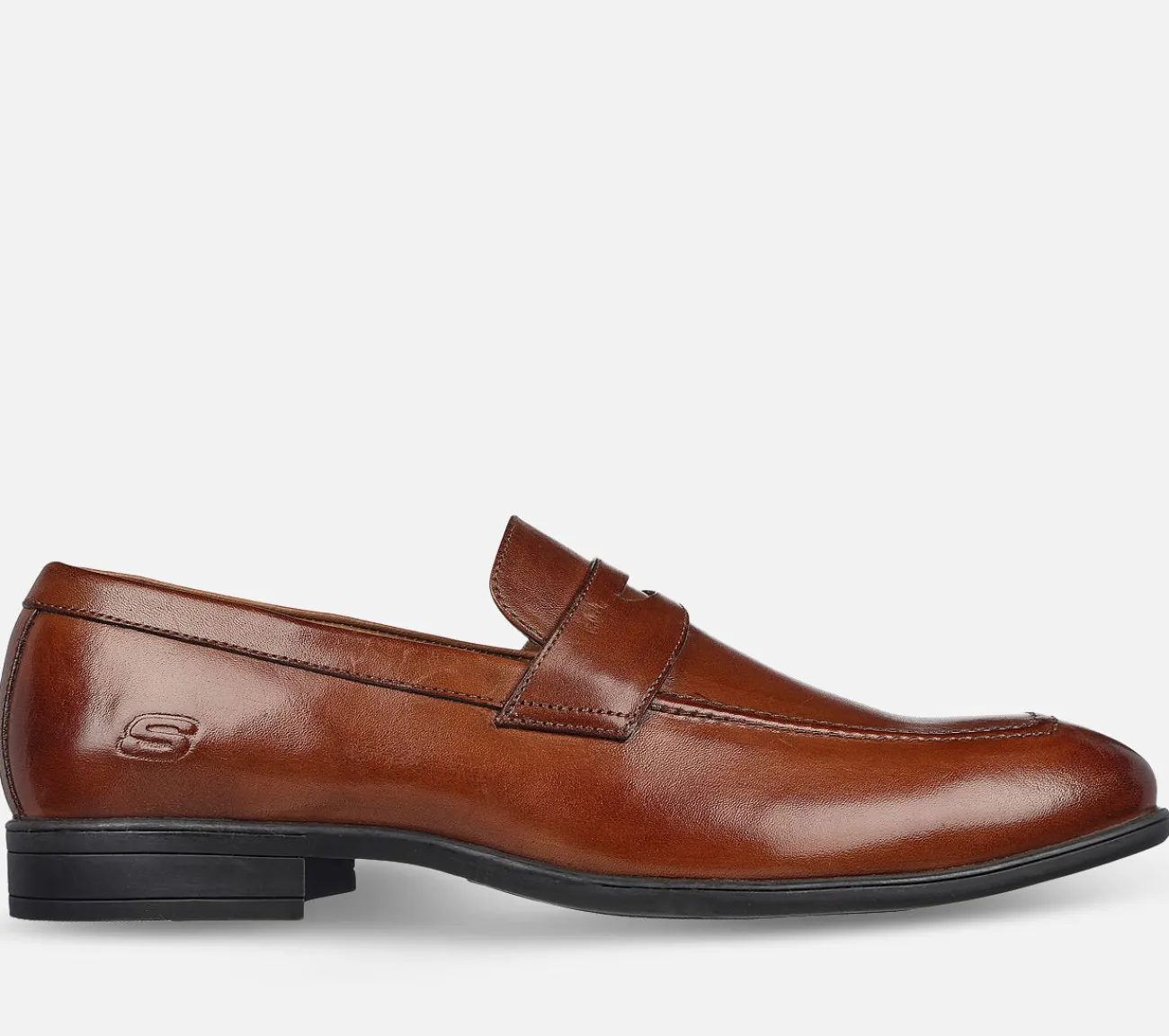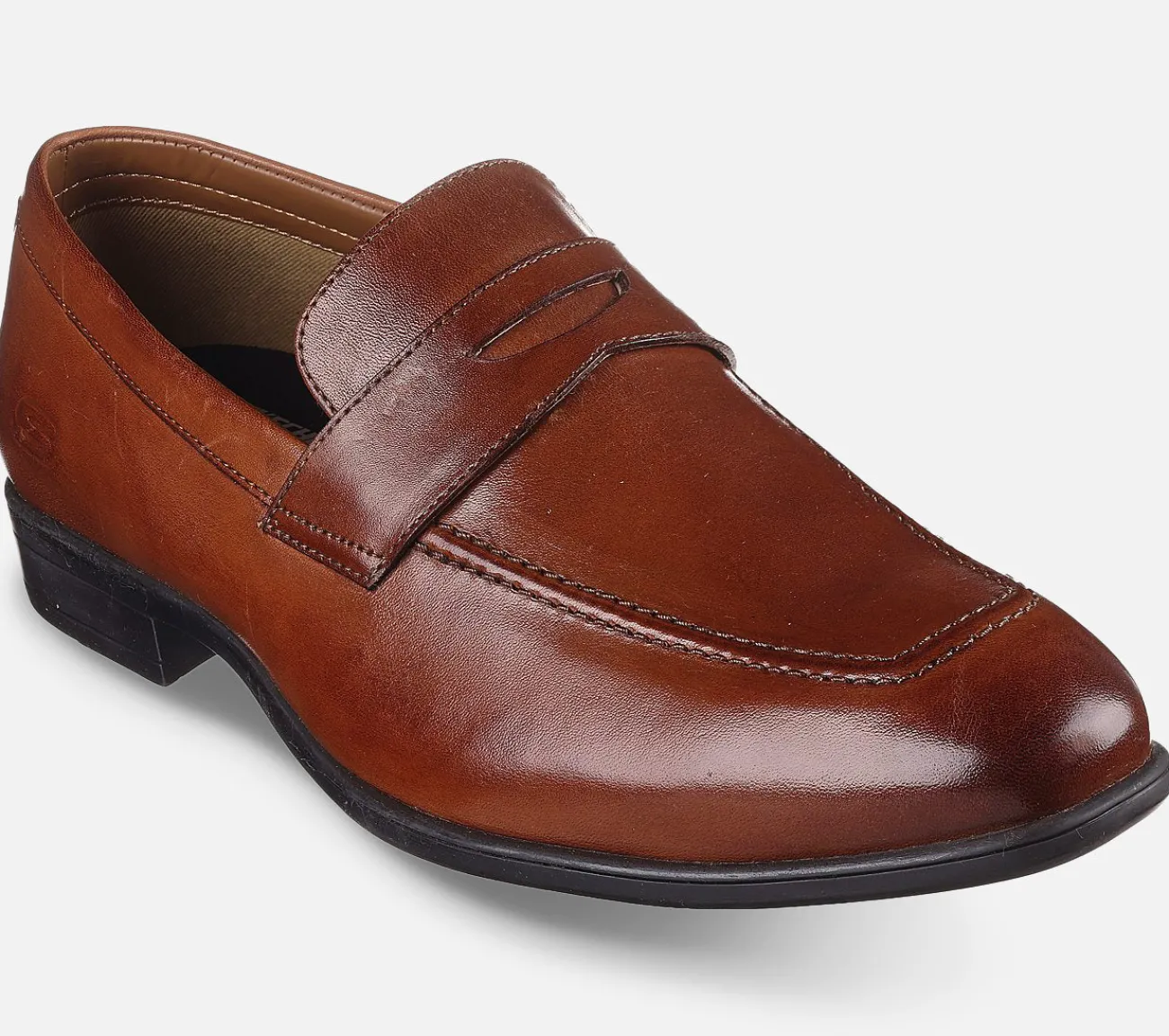 Den bedste kombination af alsidighed og moderne komfort mødes i den stilfulde Skechers Trentmore – Corinth. Denne klassiske Oxford stil har en glat læderoverdel med en penny loafer vamp og en polstret Skechers Air-Cooled Memory Foam indersål.