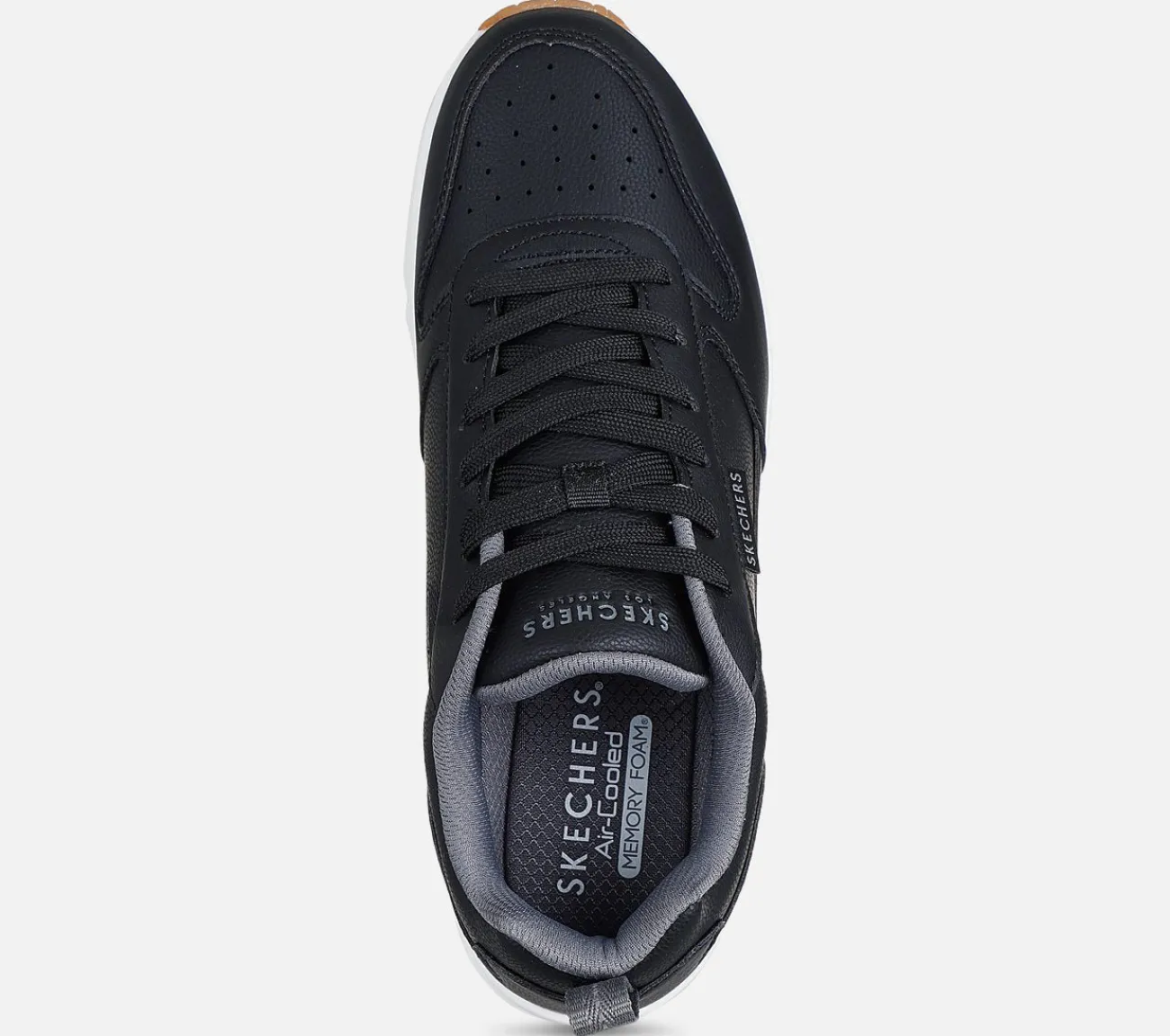 Glat, sporty stil og kølig komfort forenes i Skechers Street Uno – Alder. Denne sneaker har en overdel i duraleather, en Skechers Air-Cooled Memory Foam indersål og en Skech-Air synlig airbag mellemsål.