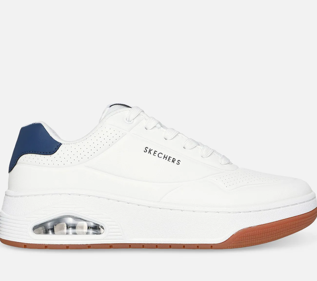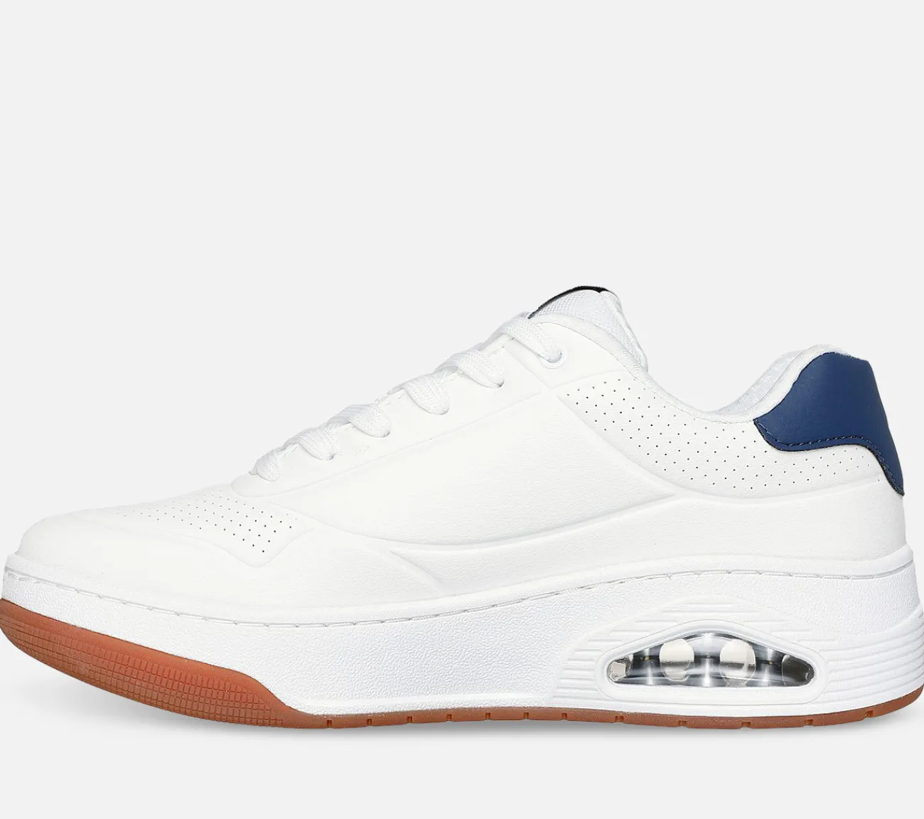 En ikonisk klassiker får en frisk opdatering med Skechers Street Uno – Court. Denne snøresneaker i court-stil har en duraleather overdel med en polstret Skechers Air-Cooled Memory Foam indersål og en synlig Skech-Air airbag mellemsål.