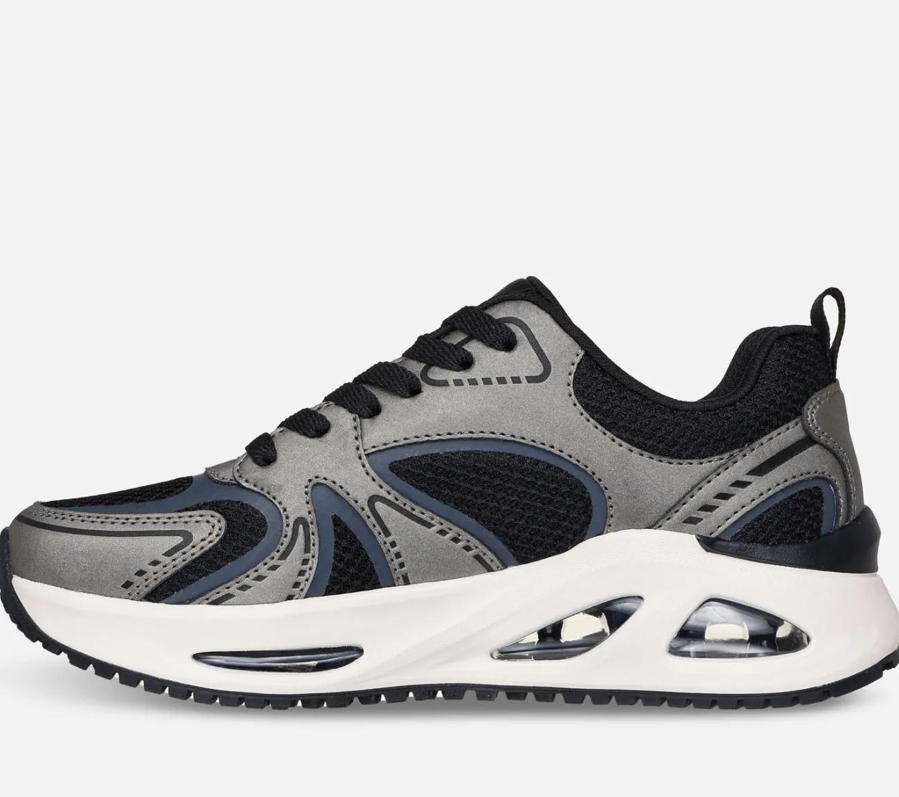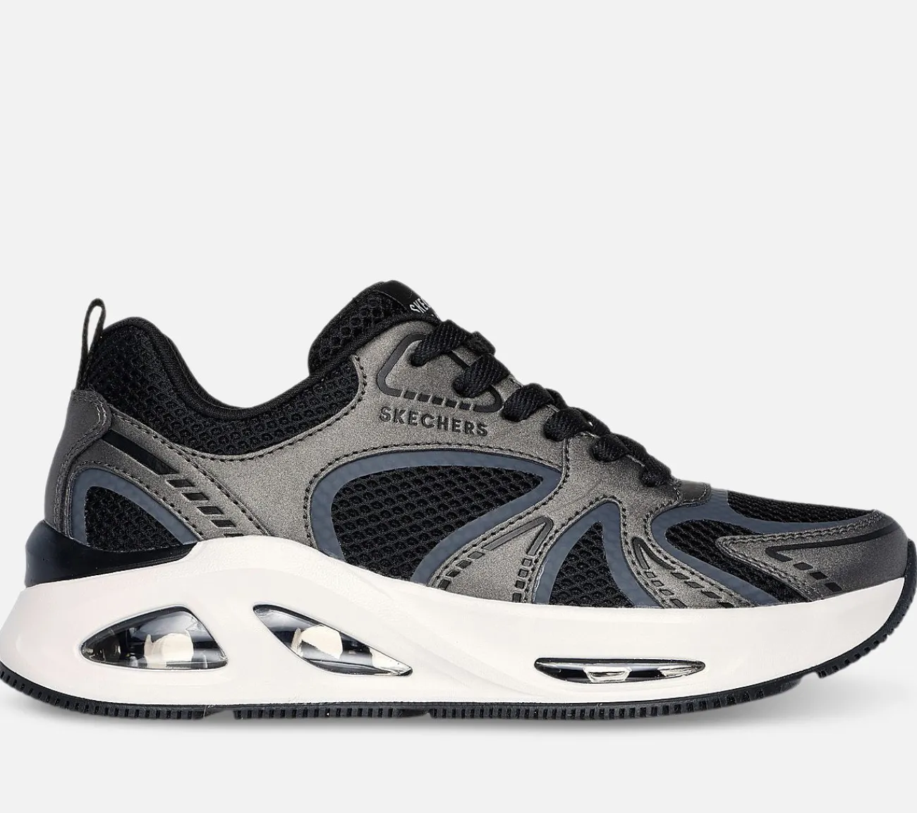 Lad din stil skinne i Skechers Street™ Uno Ego – Illustris Air. Denne sporty modesneaker med snørebånd har en mesh- og shimmer duraleather-overdel, en synlig Skech-Air® luftdæmpet mellemsål og en Skechers Air-Cooled Memory Foam® indersål.