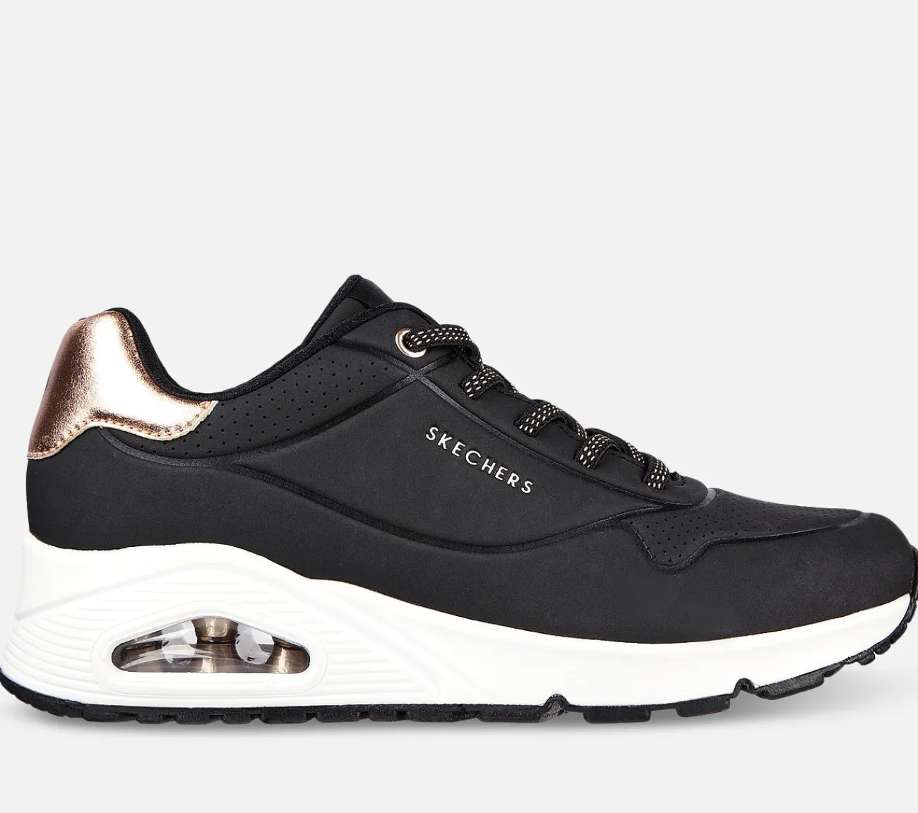 Skechers Street Uno – Shimmer Away er den ultimative fashion sneaker, der kombinerer stil med komfort. Skoen har en Skechers Air Cooled Memory Foam indersål som sikrer dig uovertruffen komfort ved hvert skridt. Den stødabsorberende Skech-Air mellemsål tilbyder letvægtsstøtte og reducerer belastningen på fødder og led. Perfekt til den modebevidste, der ikke vil gå på kompromis med komforten i hverdagen.