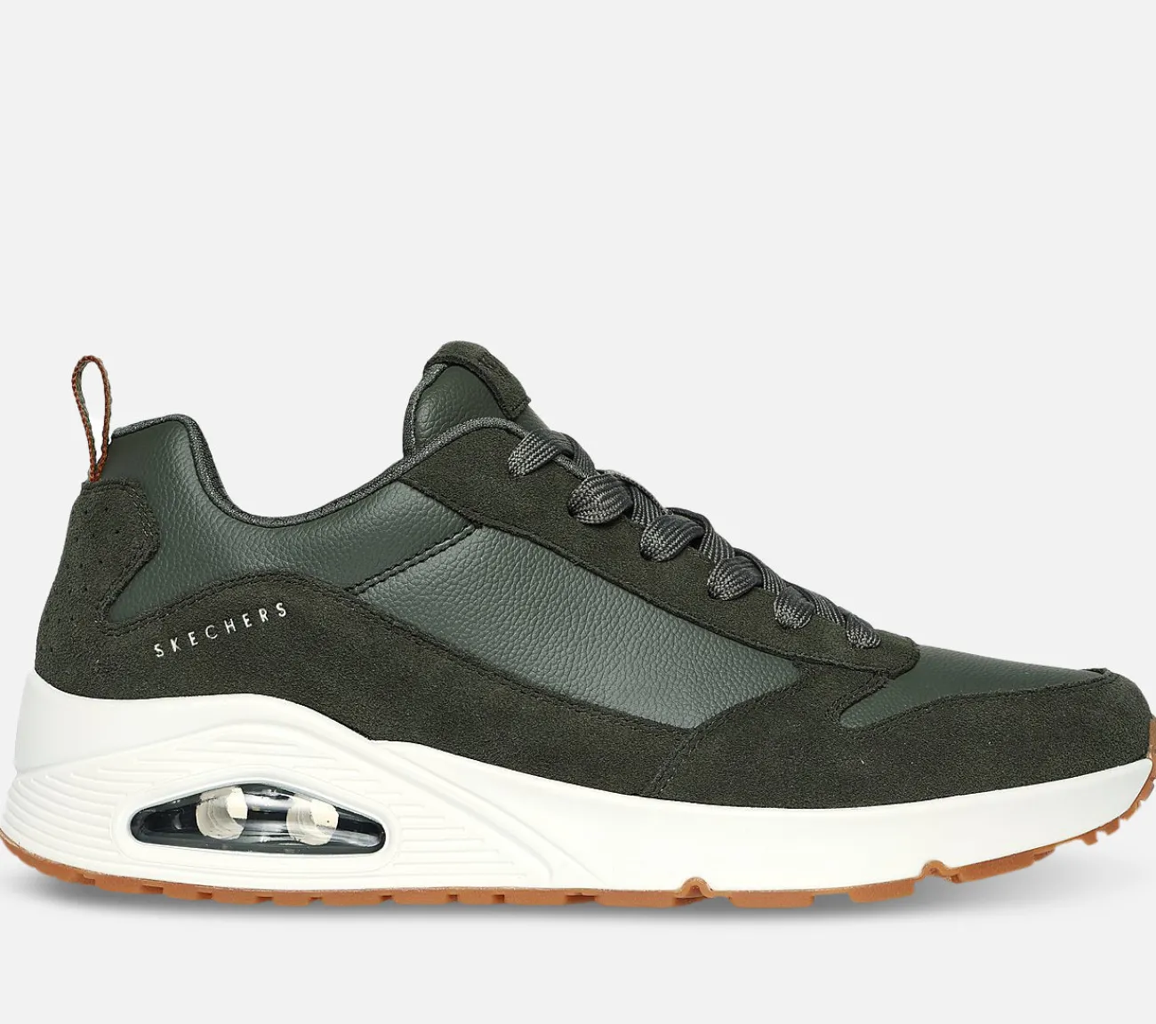 Med Air-Cooled Memory Foam får du en støttende, blød og formende indersål som giver god støtte og stabilitet. Uno Stacre har med sin Skech-Air mellemsål stødabsorbering og god støtte til dine trætte fødder.