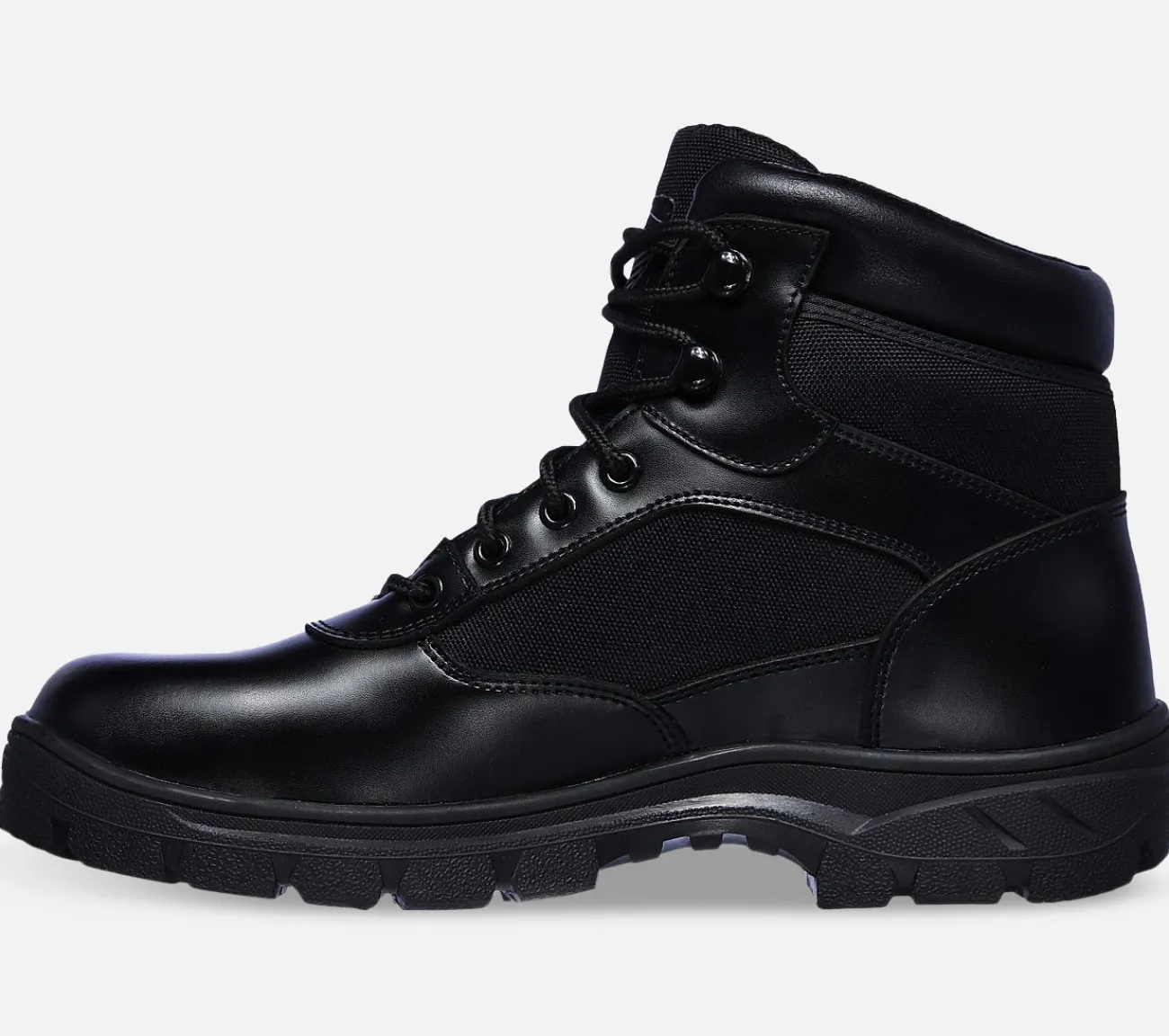 Hold dig årvågen i komfort og robust stil med Skechers Work: Wascana – Benen WP. Denne vandtætte taktiske støvle har en glat læder- og holdbar mesh-overdel med en polstret Skechers Memory Foam indersål og en skridsikker ydersål.